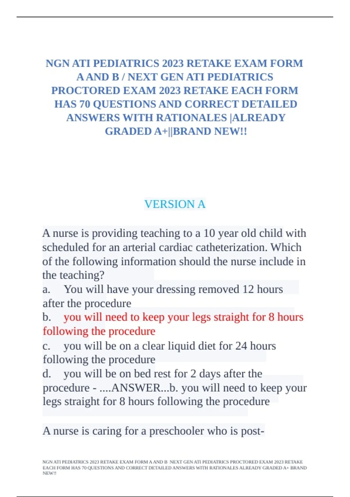 NGN ATI PEDIATRICS 2023 RETAKE EXAM FORM A AND B NEXT GEN ATI PEDIATRICS PROCTORED EXAM 2023 RETAKE