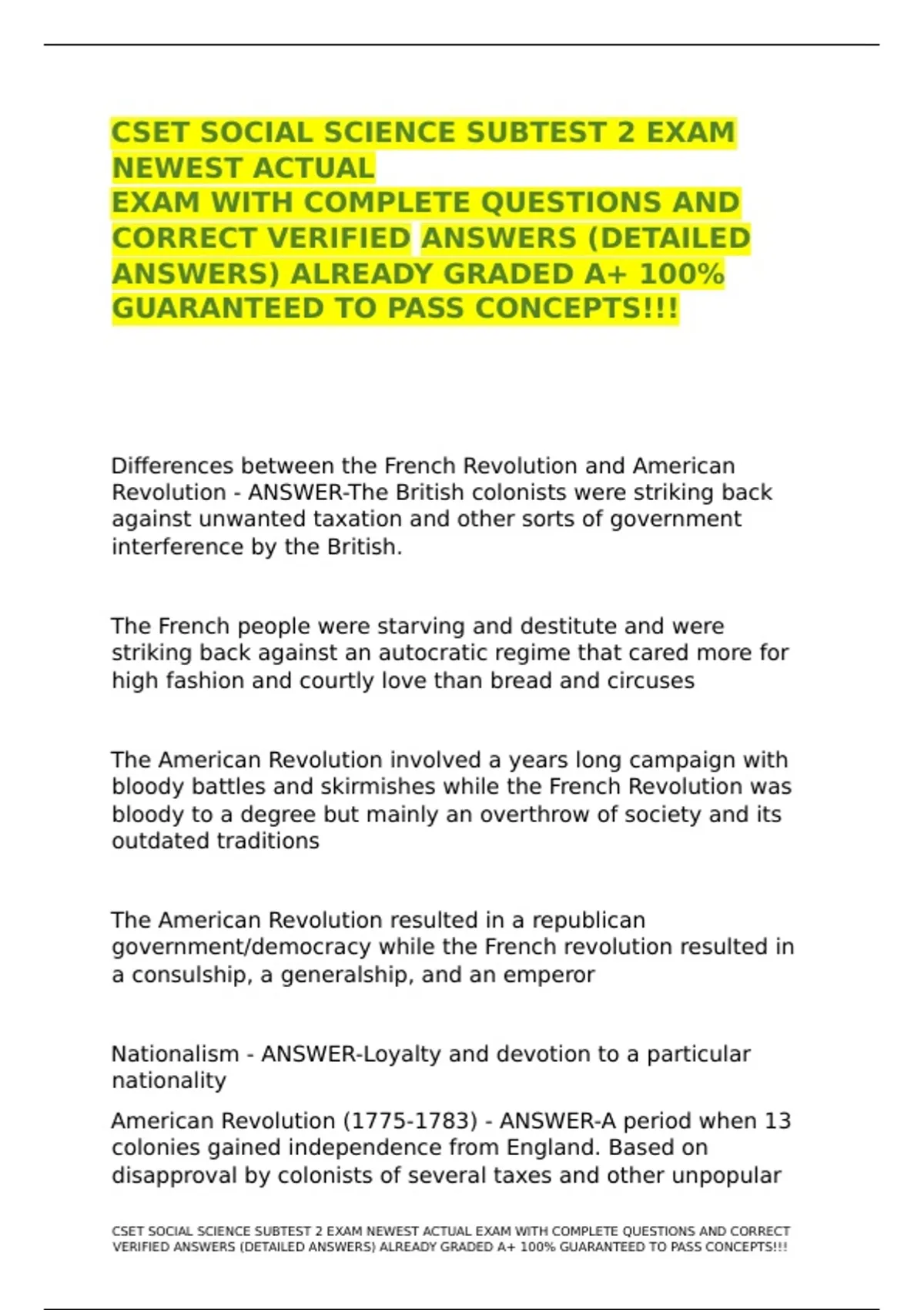 CSET SOCIAL SCIENCE SUBTEST 2 EXAM NEWEST ACTUAL EXAM WITH COMPLETE QUESTIONS AND CORRECT
