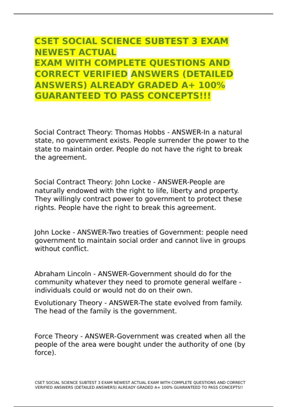 CSET SOCIAL SCIENCE SUBTEST 3 EXAM NEWEST ACTUAL EXAM WITH COMPLETE QUESTIONS AND CORRECT