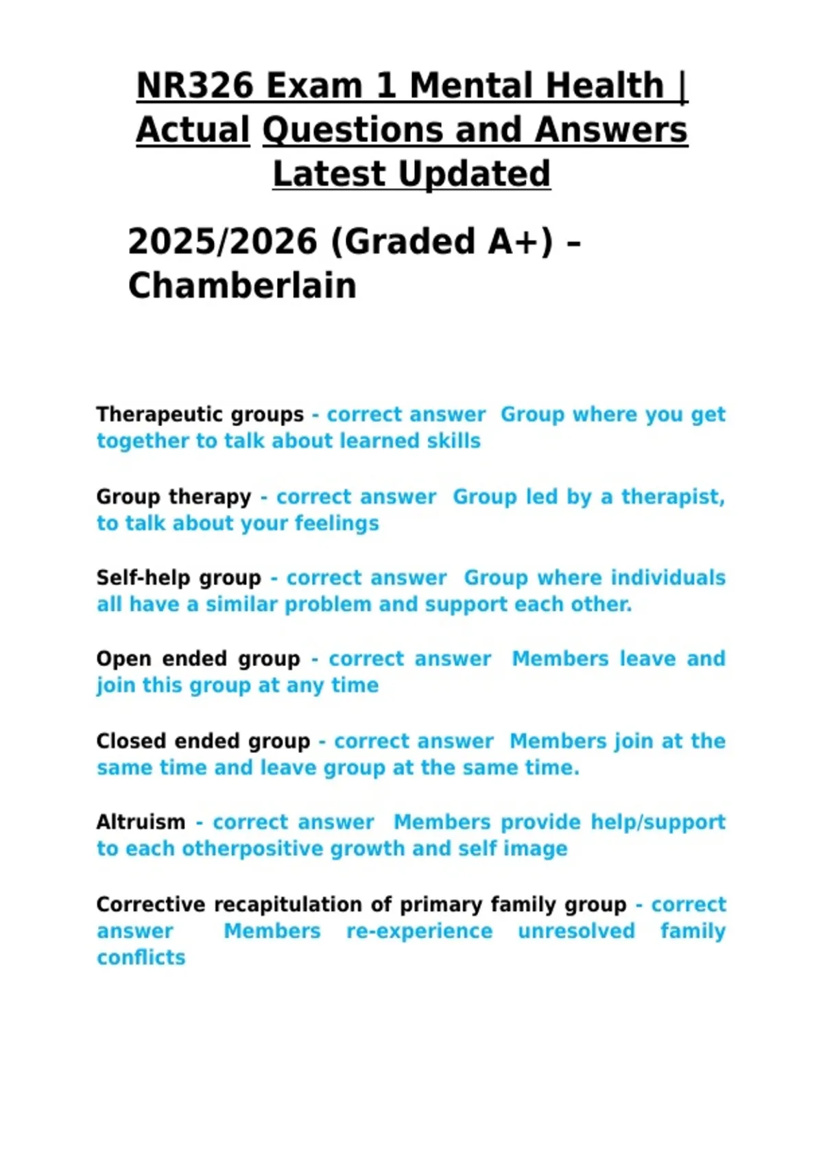 , NR326 Exam 1 Mental Health |