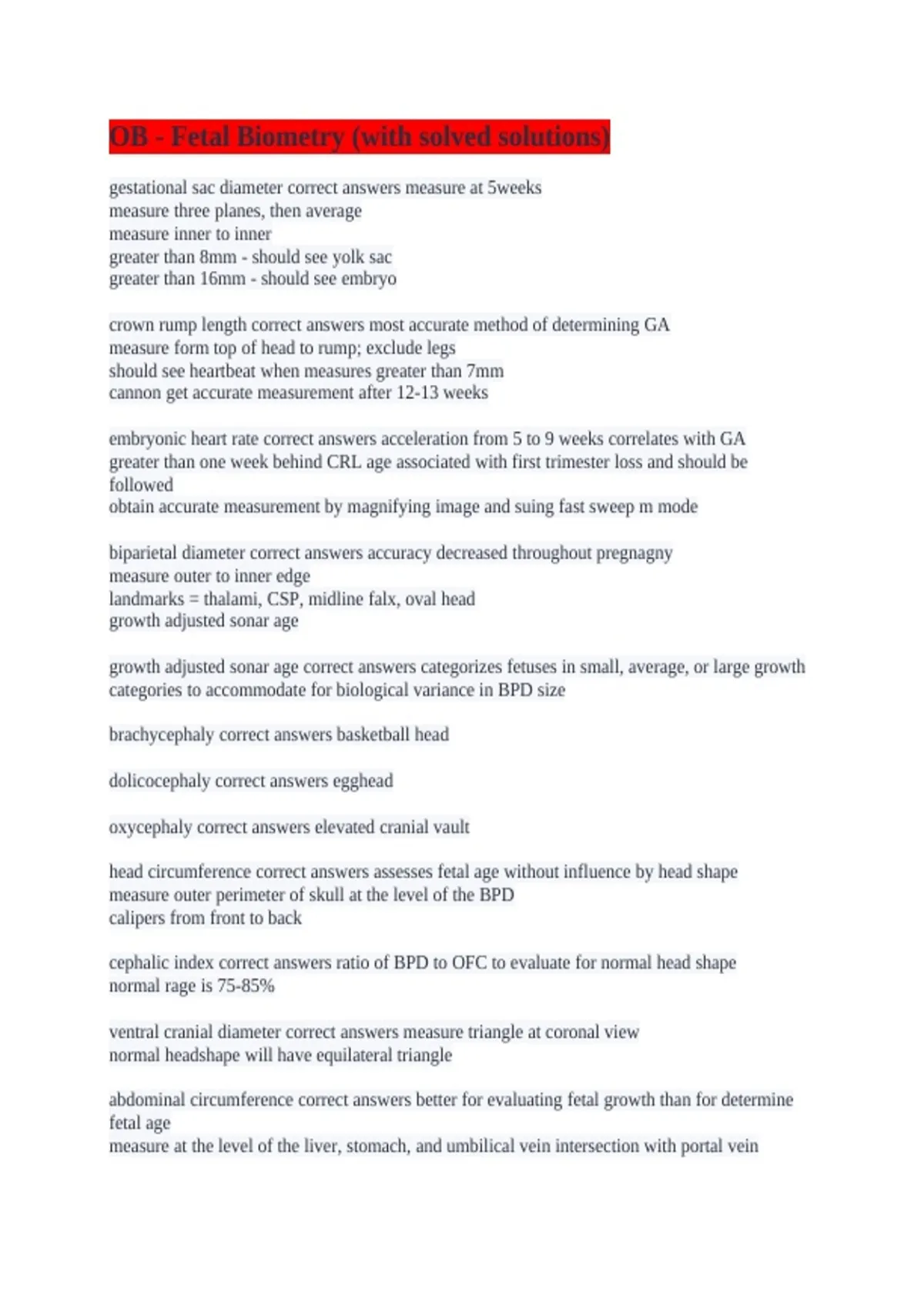 OB - Fetal Biometry (with solved solutions)