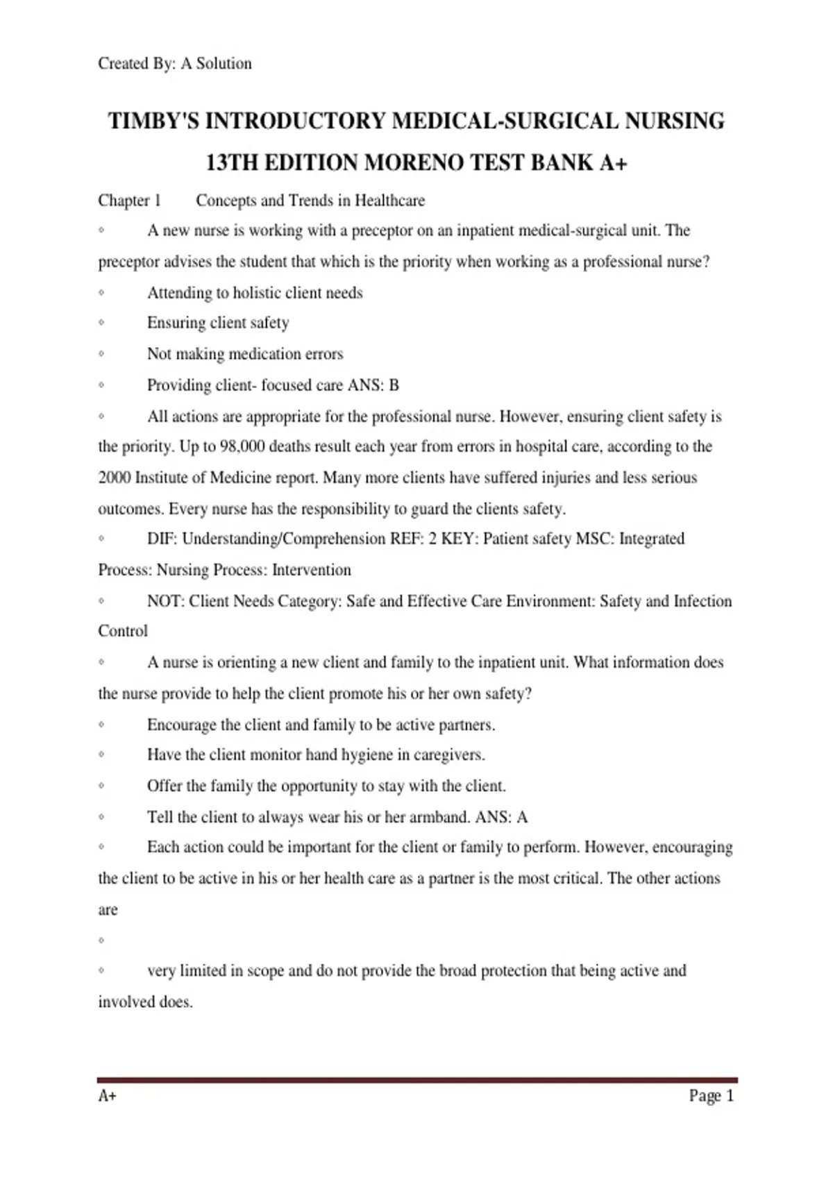 ◦ Providing client- focused care ANS: B