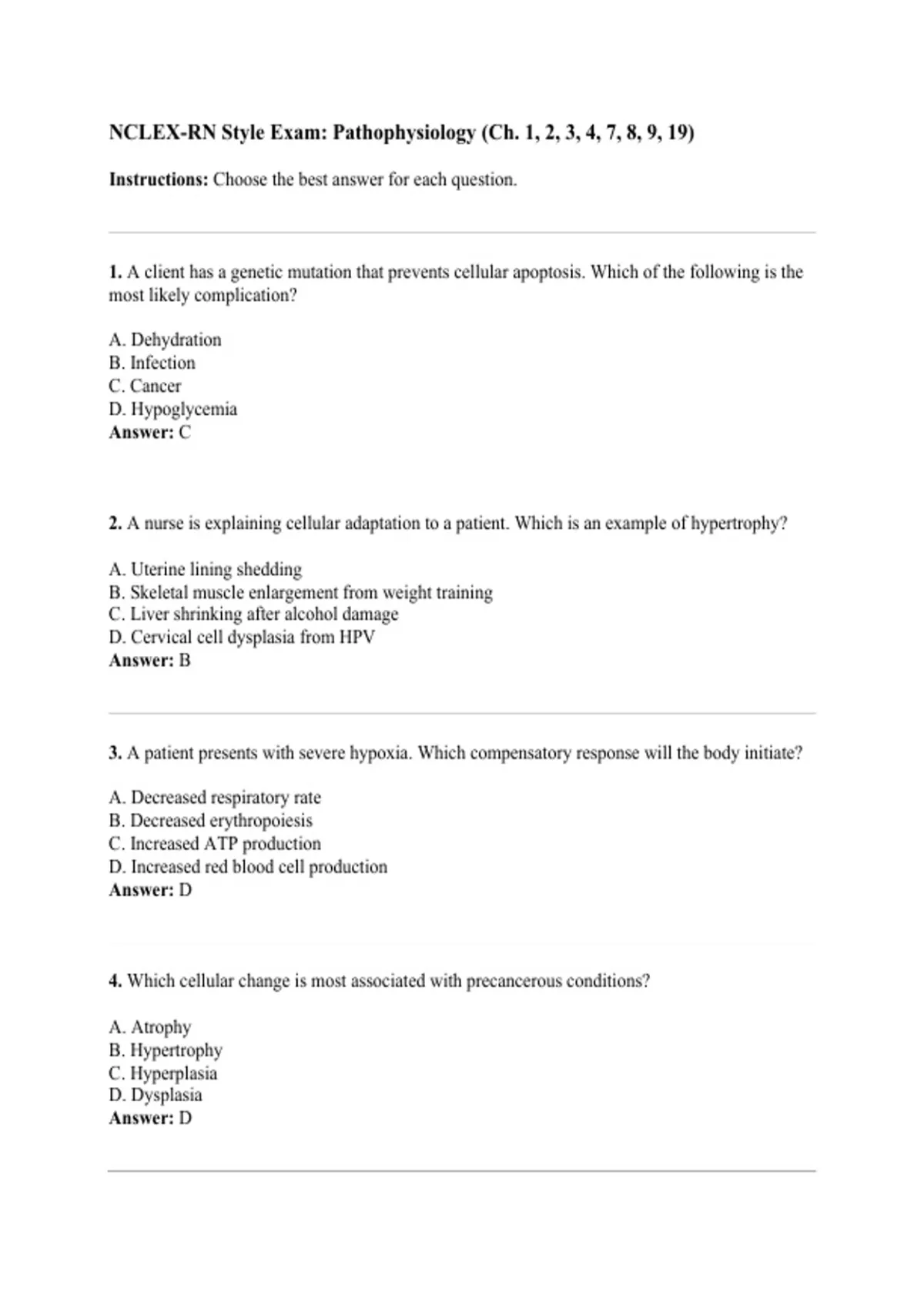NCLEX-RN Style Exam: Pathophysiology (Ch. 1, 2, 3, 4, 7, 8, 9, 19)