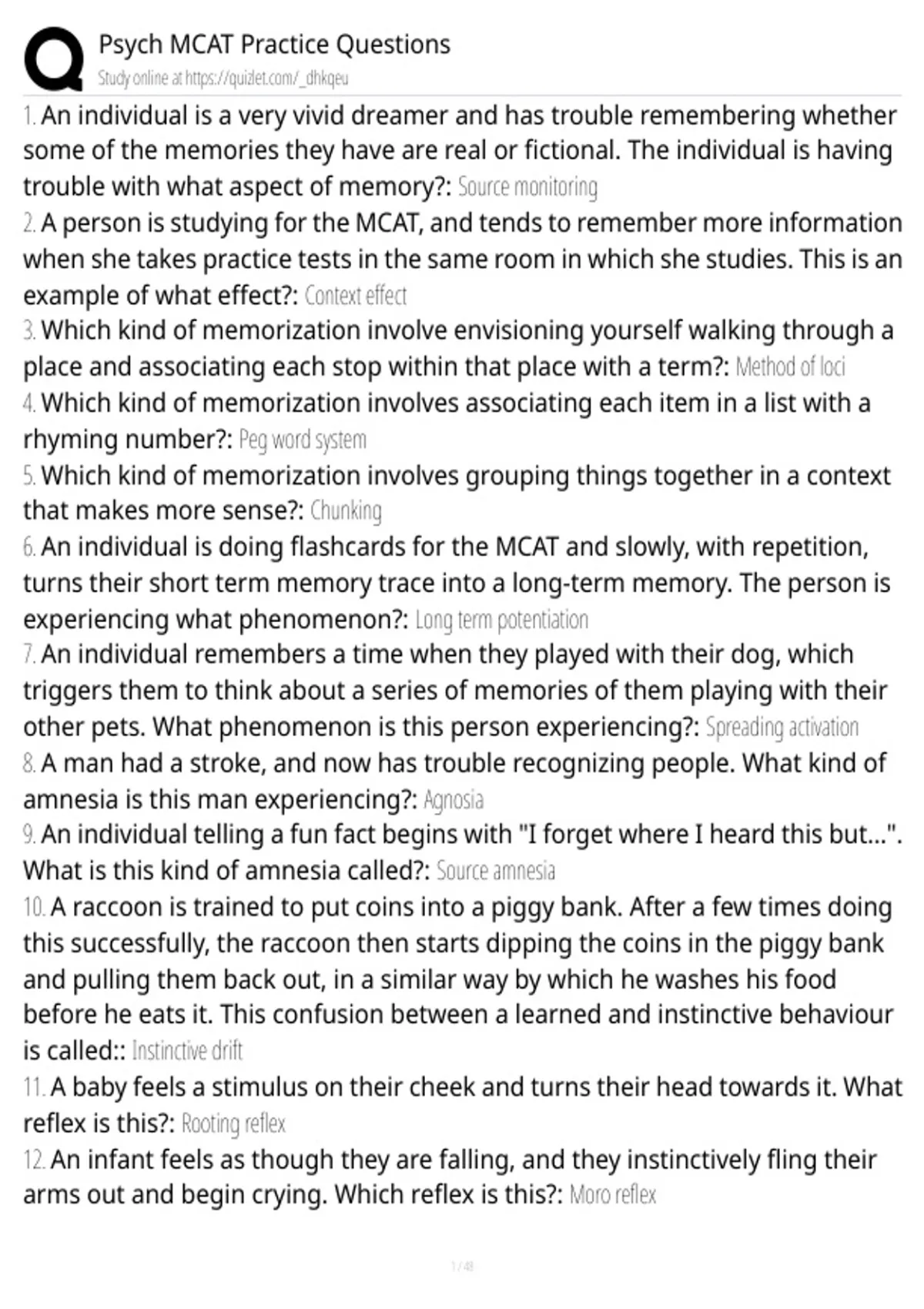 6. An individual is doing flashcards for the MCAT and slowly, with repetition,