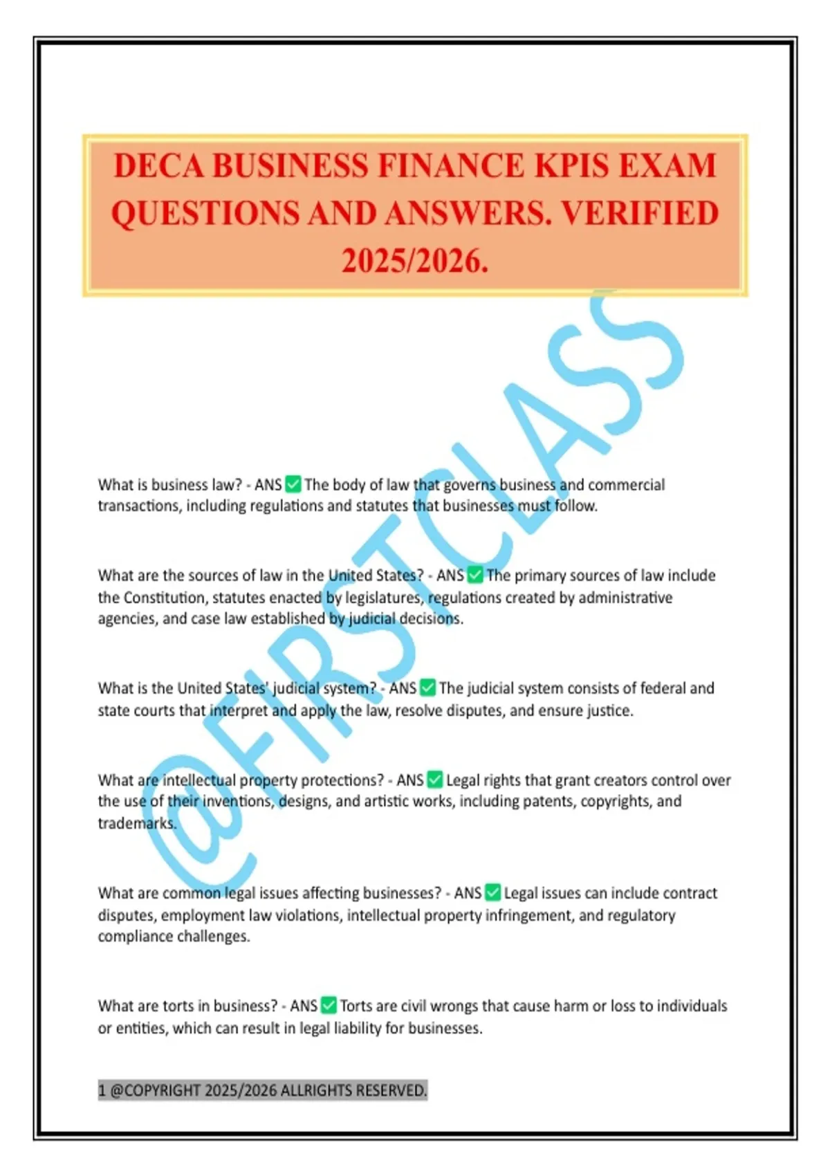 DECA BUSINESS FINANCE KPIS EXAM QUESTIONS AND ANSWERS. VERIFIED 2025/2026.