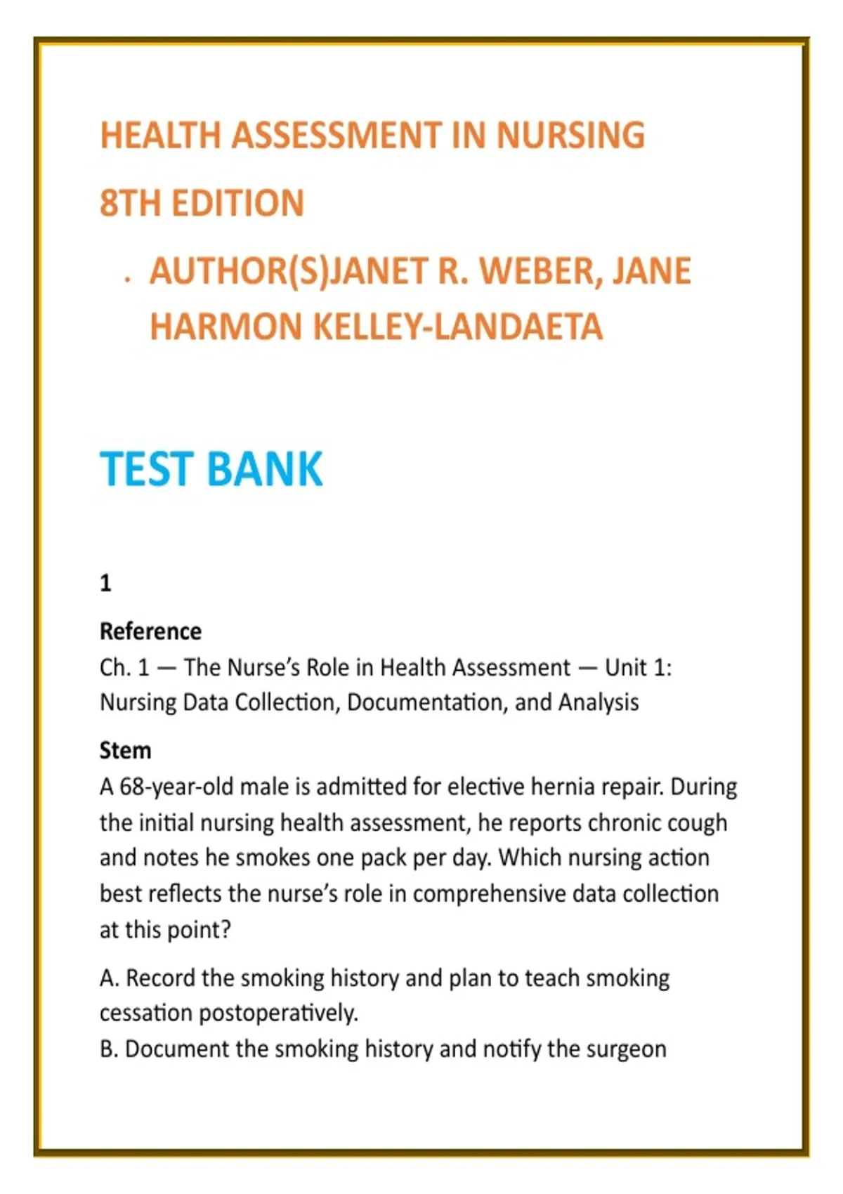 Ch. 1 — The Nurse’s Role in Health Assessment — Unit 1: