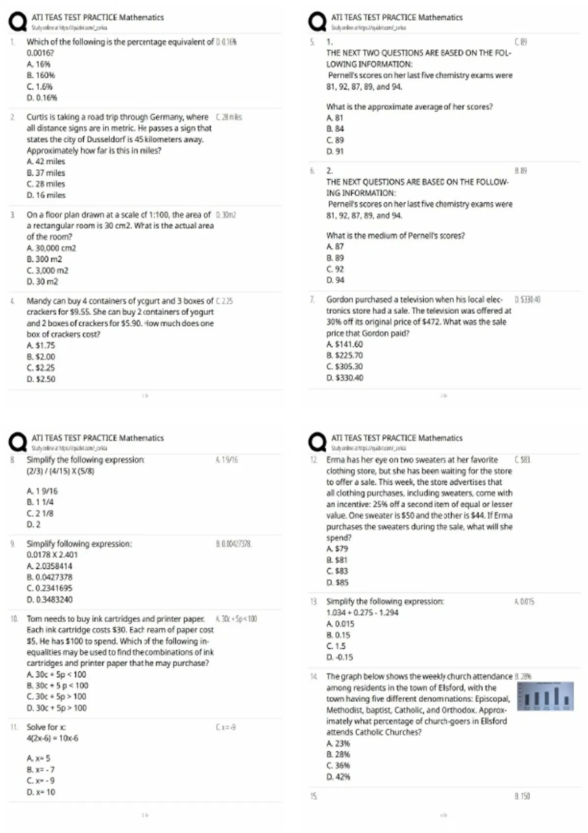 - ATI TEAS PRACTICE Mathematics
