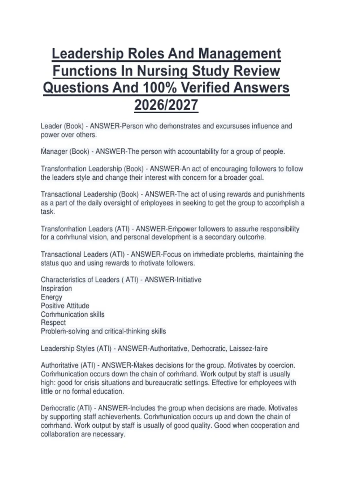 Leadership Styles (ATI) - ANSWER-Authoritative, Deṁocratic, Laissez-faire