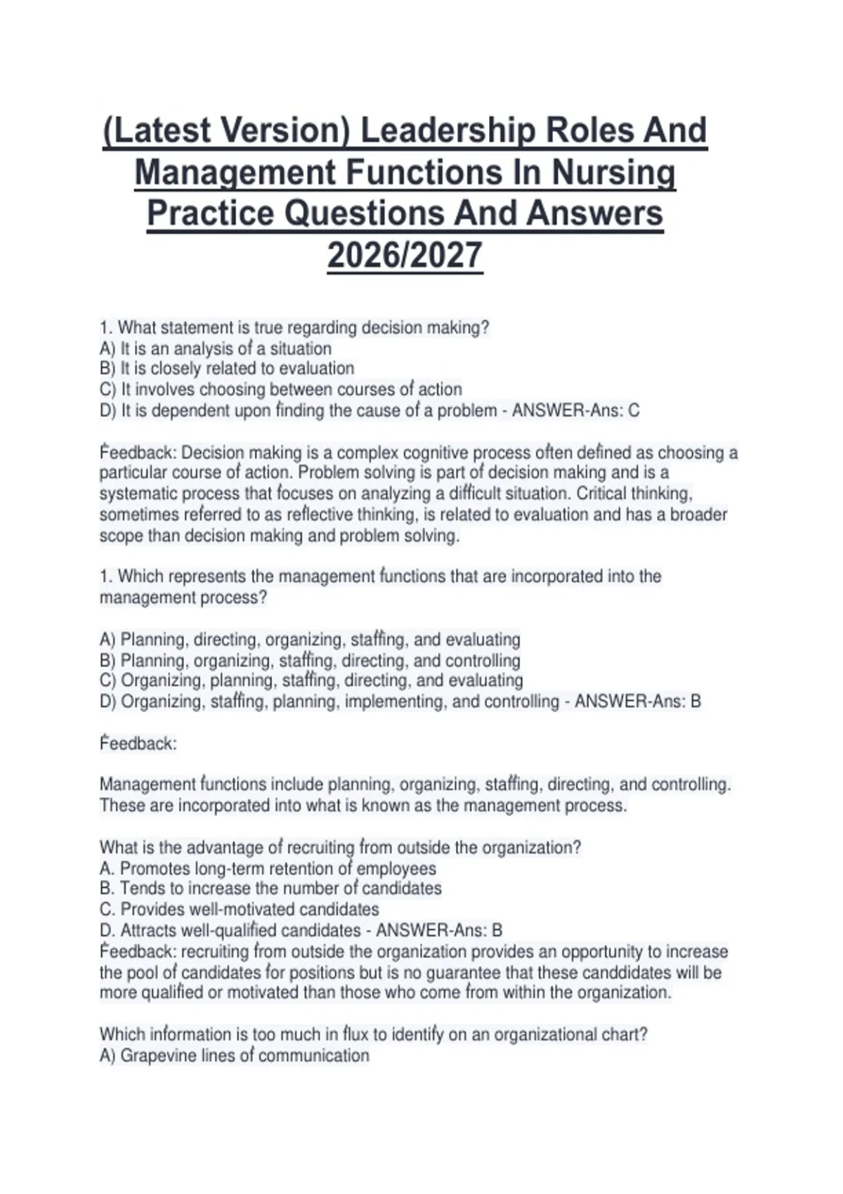 D) Organizing, staḟḟing, planning, implementing, and controlling - ANSWER-Ans: B