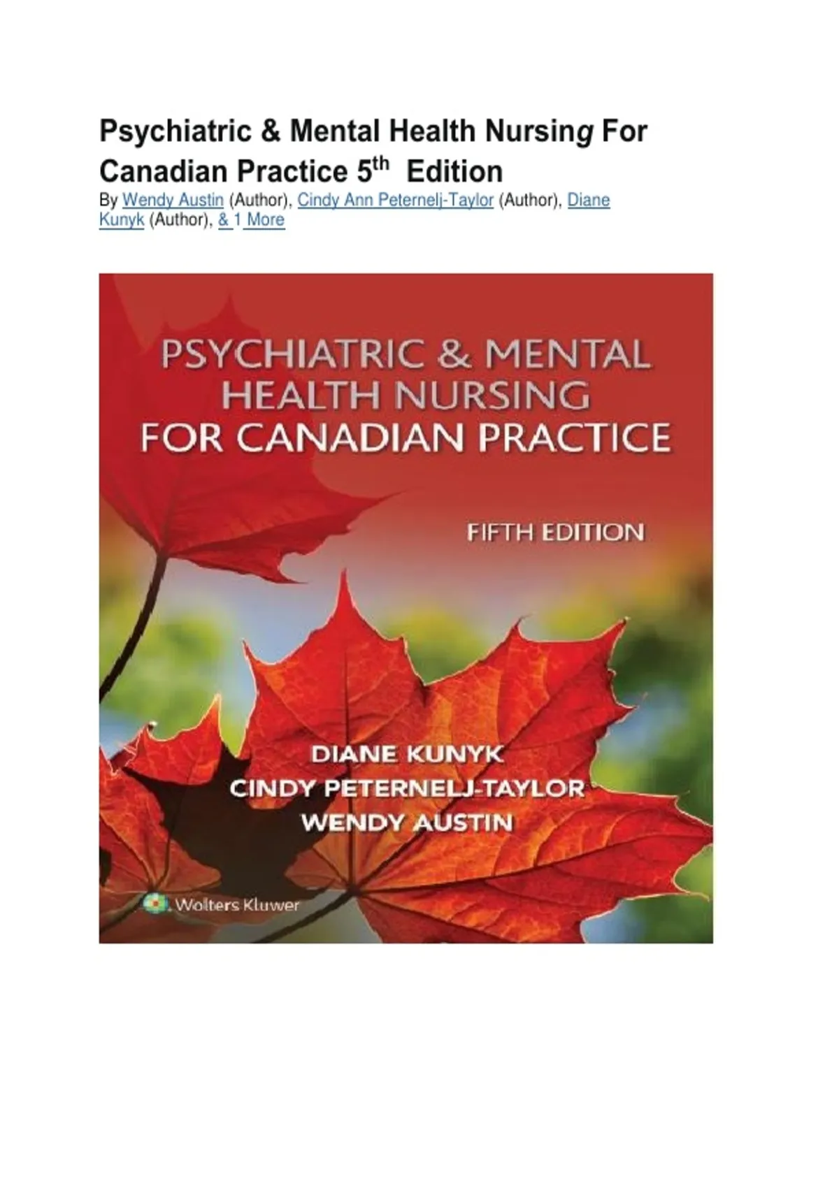 TEST BANK FOR PSYCHIATRIC & MENTAL HEALTH NURSING FOR CANADIAN PRACTICE 5TH EDITION NEWEST 2026 CHAPTERS 1-35 BY WENDY AUSTIN (AUTHOR), CINDY ANN PETERNELJ-TAYLOR (AUTHOR), DIANE KUNYK (AUTHOR), & 1 MORE