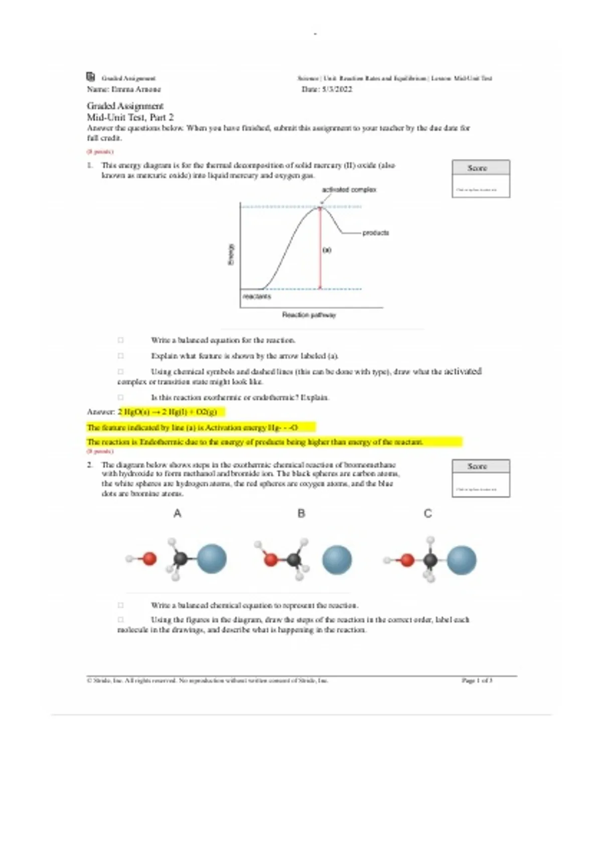 1. This energy diagram is for the thermal decomposition of solid mercury (II) oxide (also Score