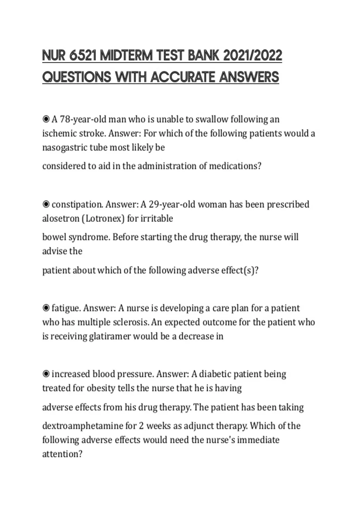 NUR 6521 MIDTERM TEST BANK 2021/2022
