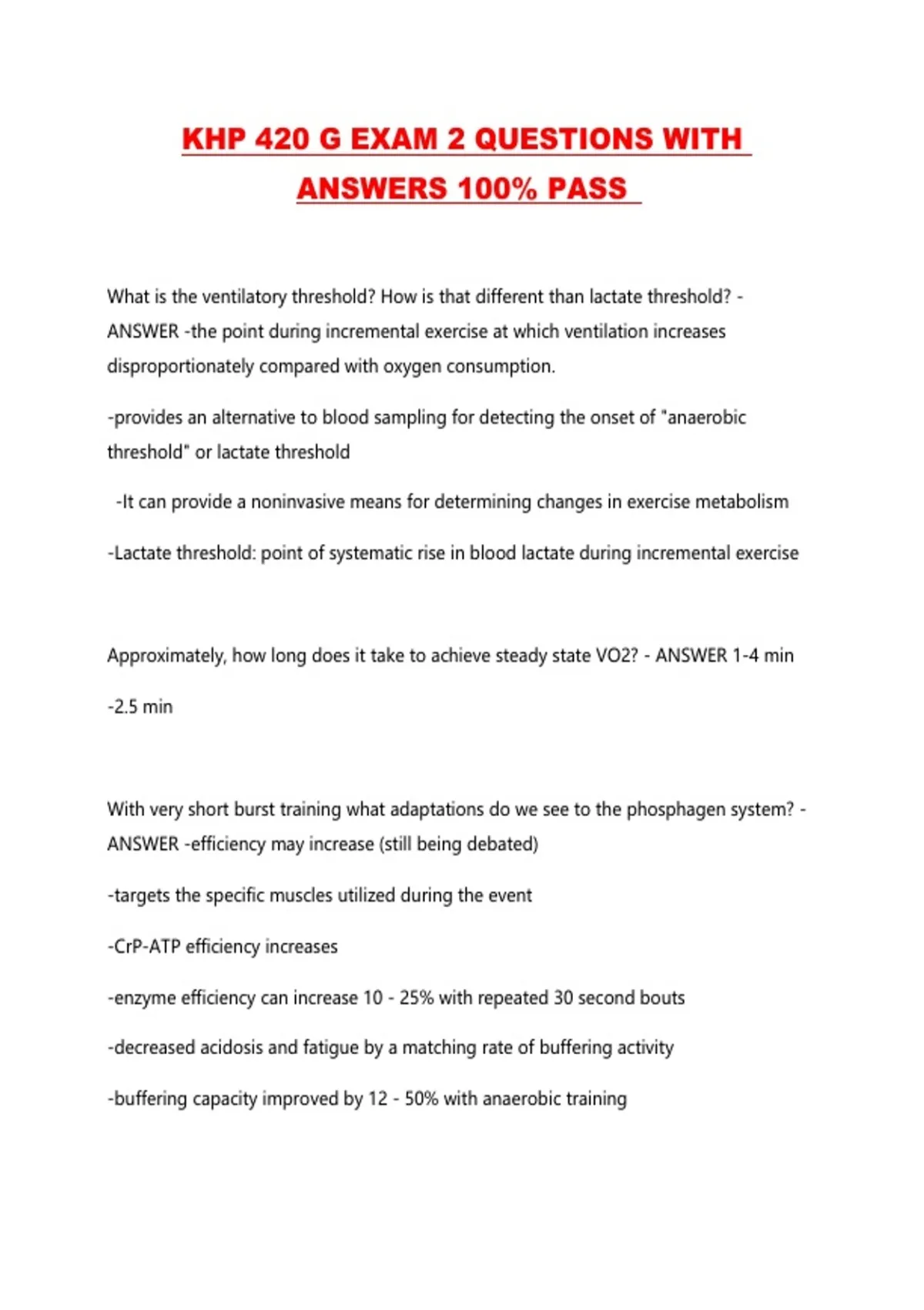 KHP 420 G EXAM 2 QUESTIONS WITH ANSWERS 100% PASS ...