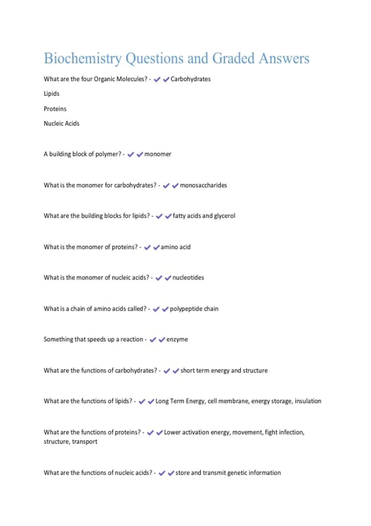Biochemistry Questions and Graded Answers