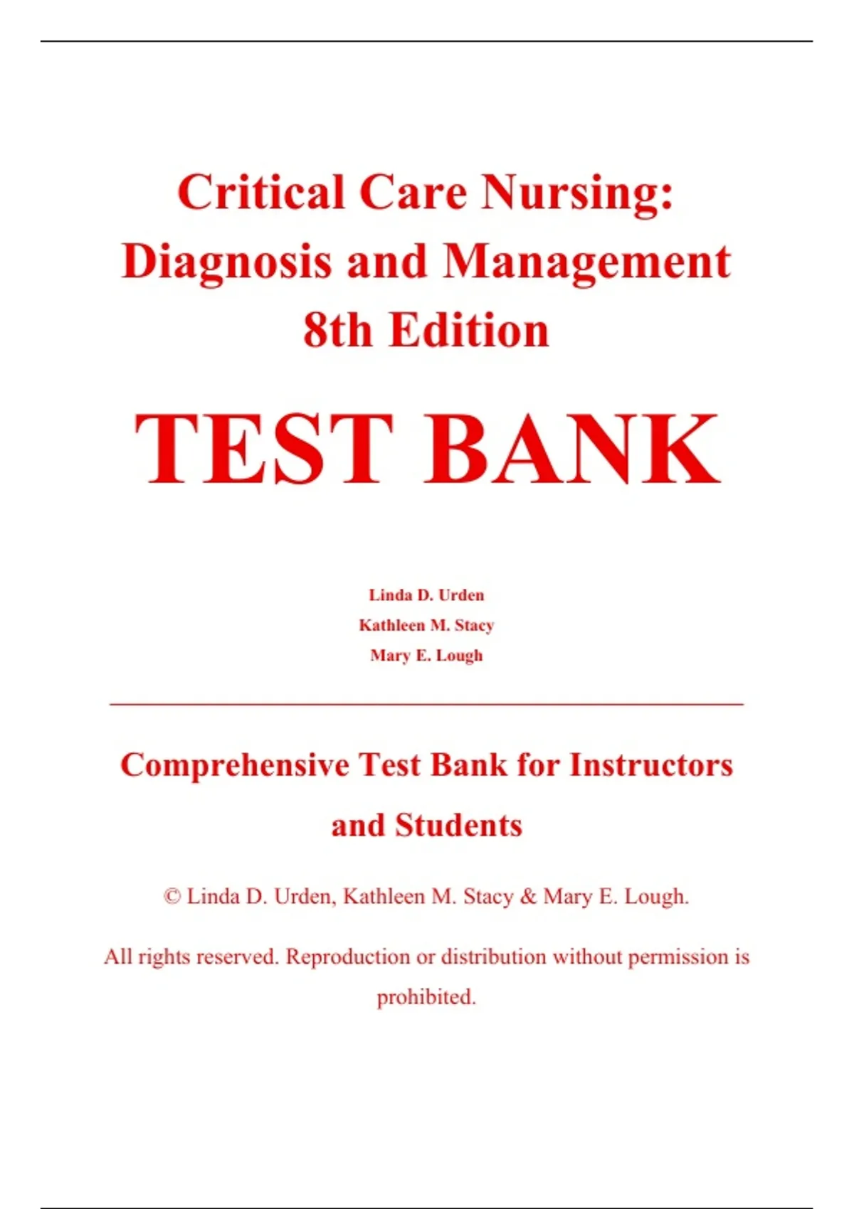 Complete Test Bank - Critical Care Nursing: Diagnosis and Management, 8th Edition – Linda D. Urden, Kathleen M. Stacy, Mary E. Lough – ISBN 9780323447522 (All Chapters Covered 1–41)