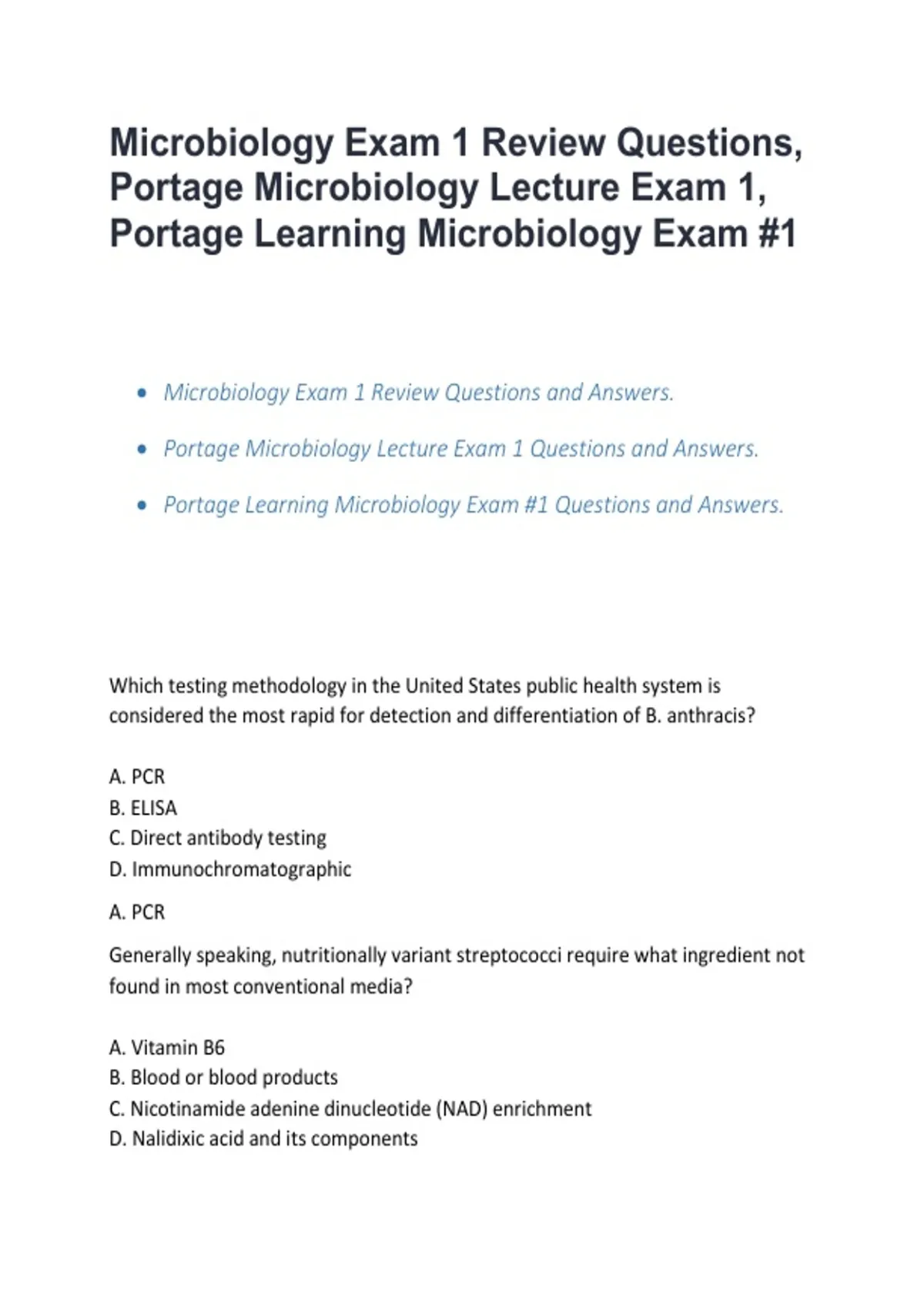 Microbiology Exam 1 Review Questions and Answers.
