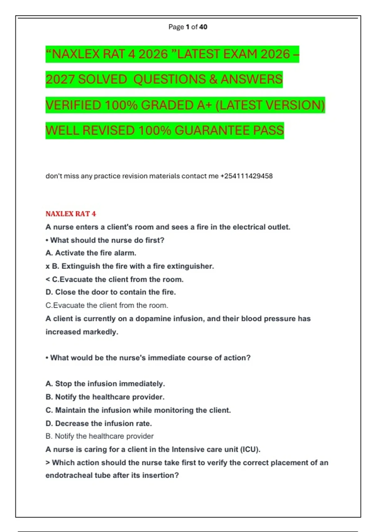 “NAXLEX RAT 4 2026 ”LATEST EXAM 2026 – 2027 SOLVED QUESTIONS & ANSWERS VERIFIED 100% GRADED A+ (LATEST VERSION) WELL REVISED 100% GUARANTEE PASS