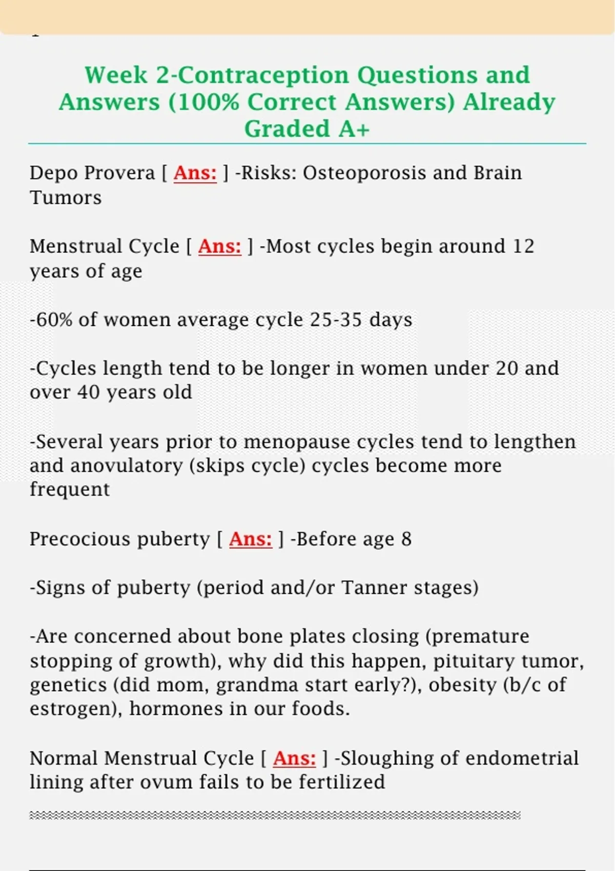 Week 2-Contraception Questions and Answers (100% Correct Answers) Already Graded A+