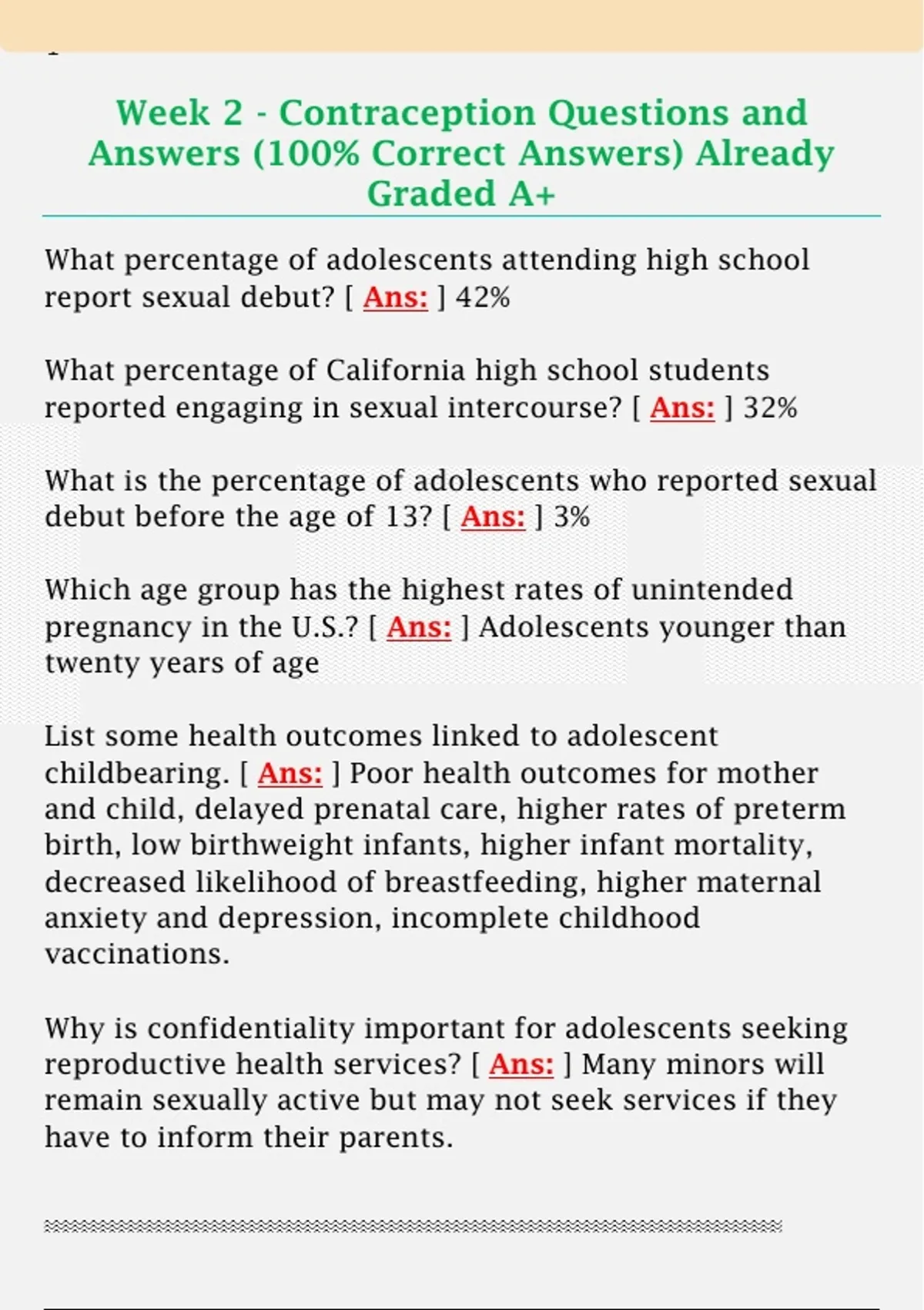 Week 2 - Contraception Questions and Answers (100% Correct Answers) Already Graded A+