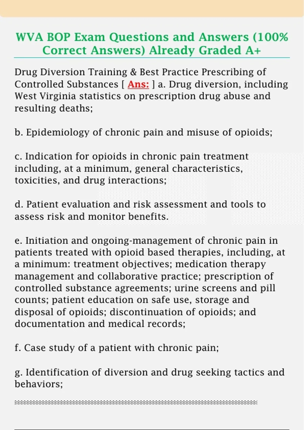 WVA BOP Exam Questions and Answers (100%