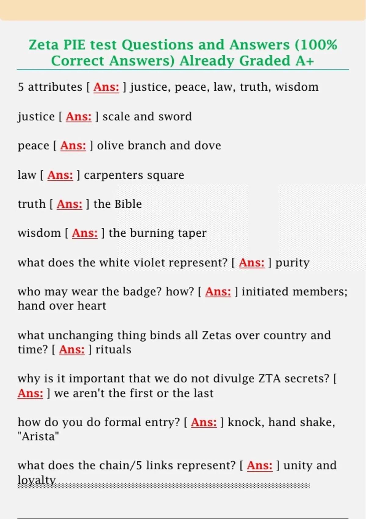 Zeta PIE test Questions and Answers (100% Correct Answers) Already Graded A+