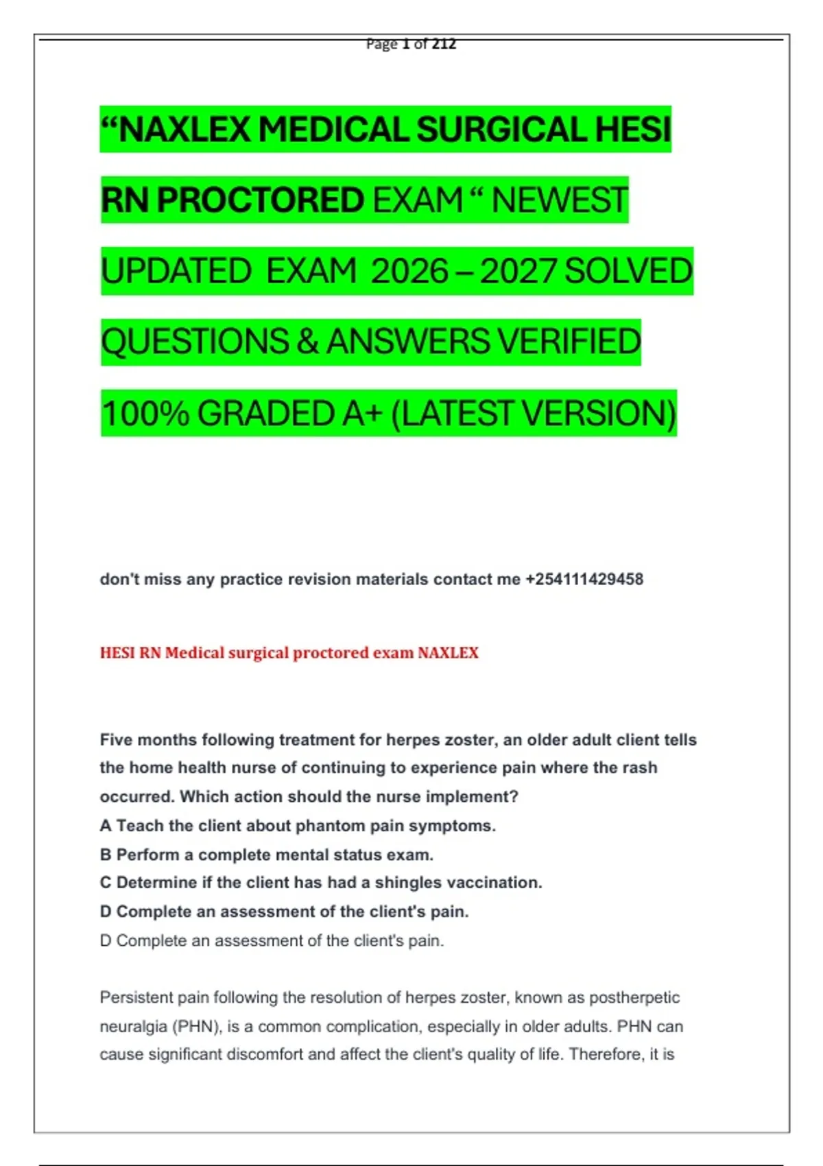 “NAXLEX MEDICAL SURGICAL HESI RN PROCTORED EXAM “ NEWEST UPDATED EXAM 2026 – 2027 SOLVED QUESTIONS & ANSWERS VERIFIED 100% GRADED A+ (LATEST VERSION)