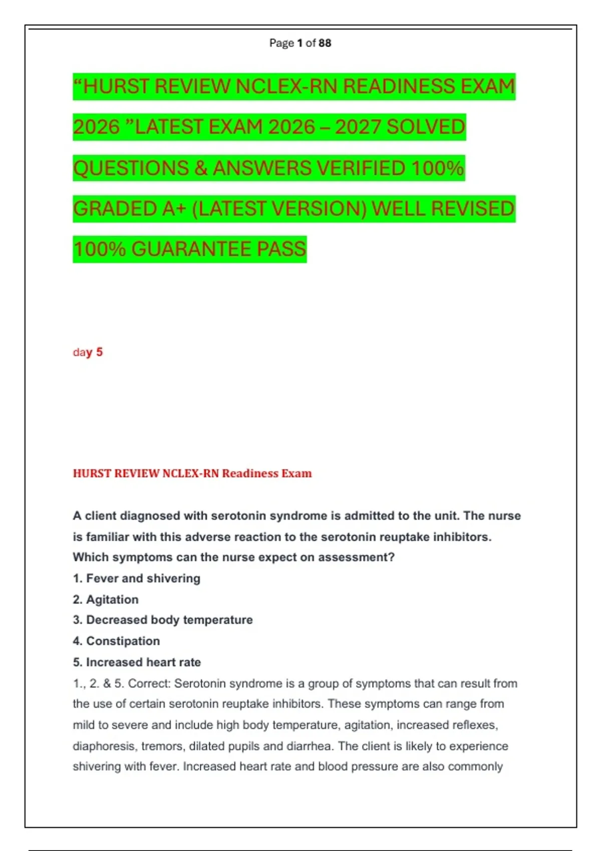 4. Incorrect: Diarrhea, not constipation, is a symptom of serotonin syndrome.