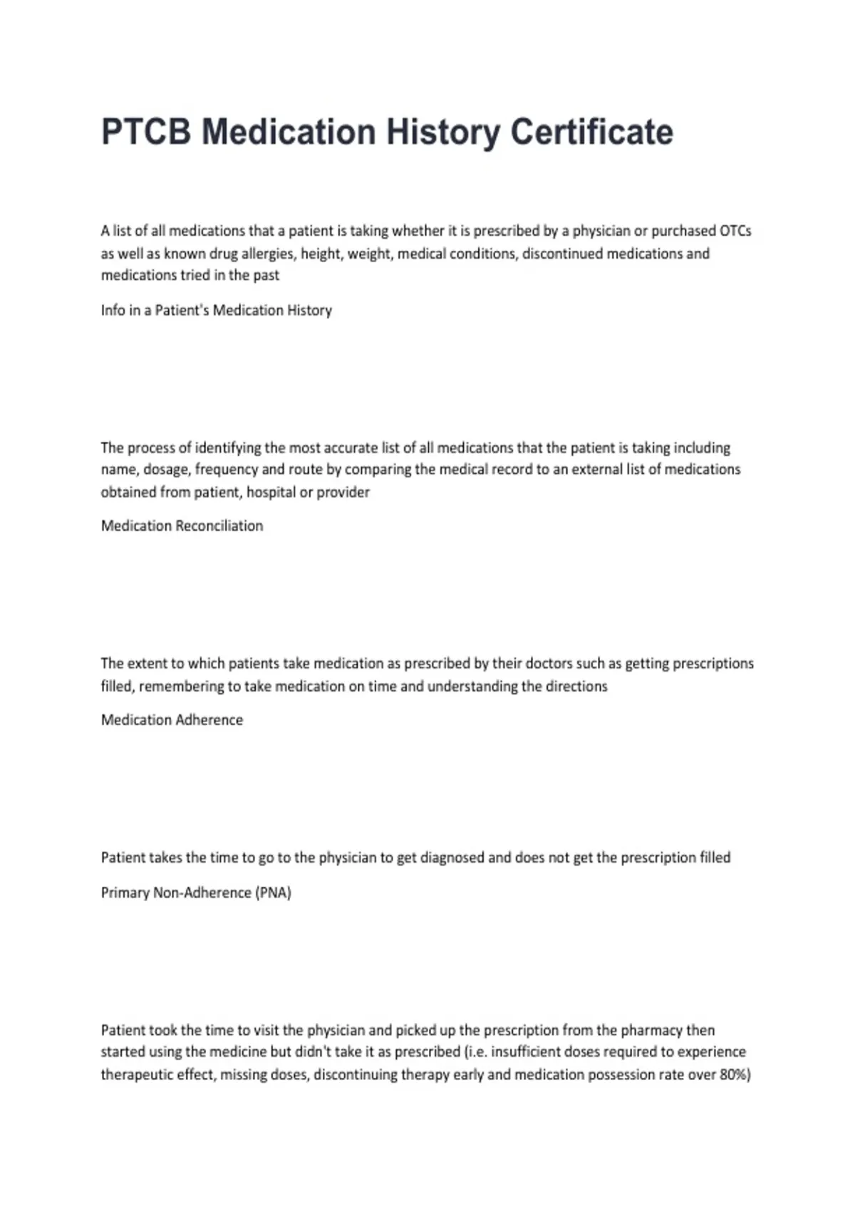 PTCB Medication History Certificate