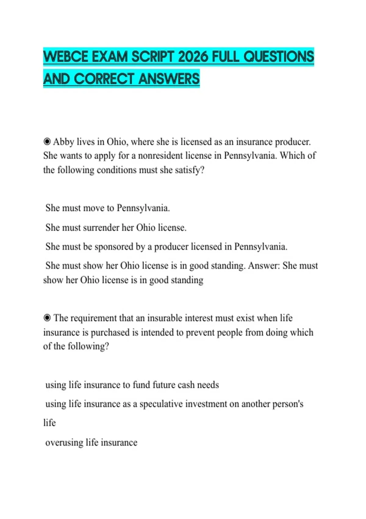 WEBCE EXAM SCRIPT 2026 FULL QUESTIONS