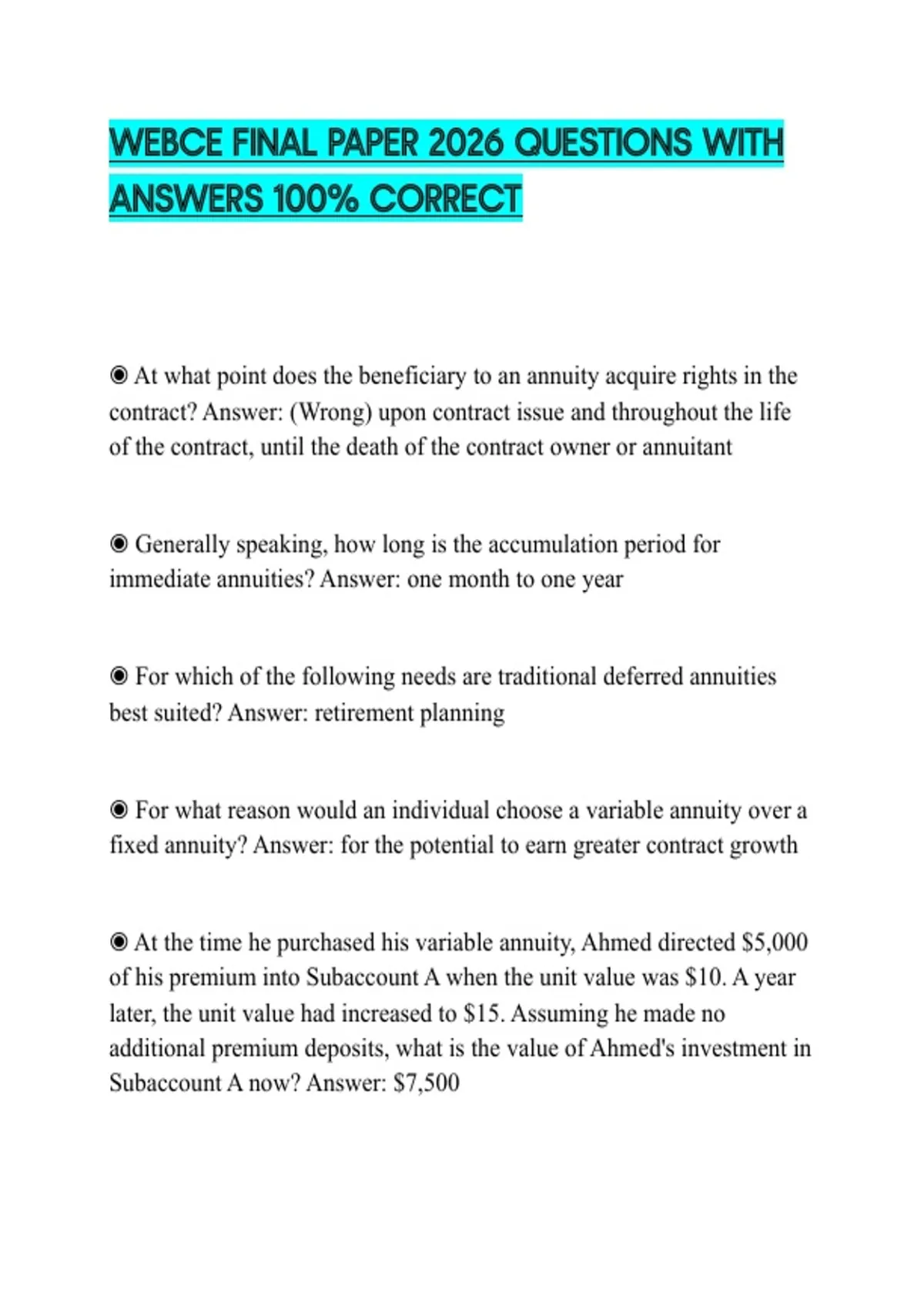 ◉ At the time he purchased his variable annuity, Ahmed directed $5,000