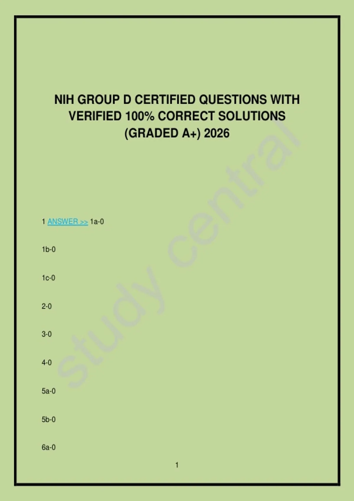 NIH Group D Certified Questions, 2026 – Verified 100% Correct Solutions (A+ Graded)