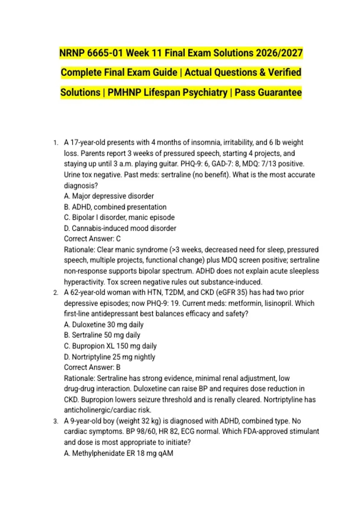NRNP 6665-01 Week 11 Final Exam Solutions 2026/2027
