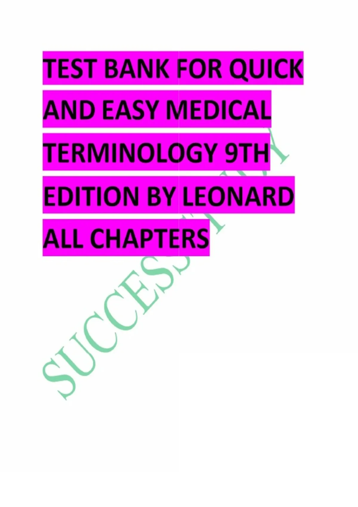 TEST BANK FOR QUICK AND EASY MEDICAL TERMINOLOGY 9TH EDITION BY LEONARD ALL CHAPTERS.