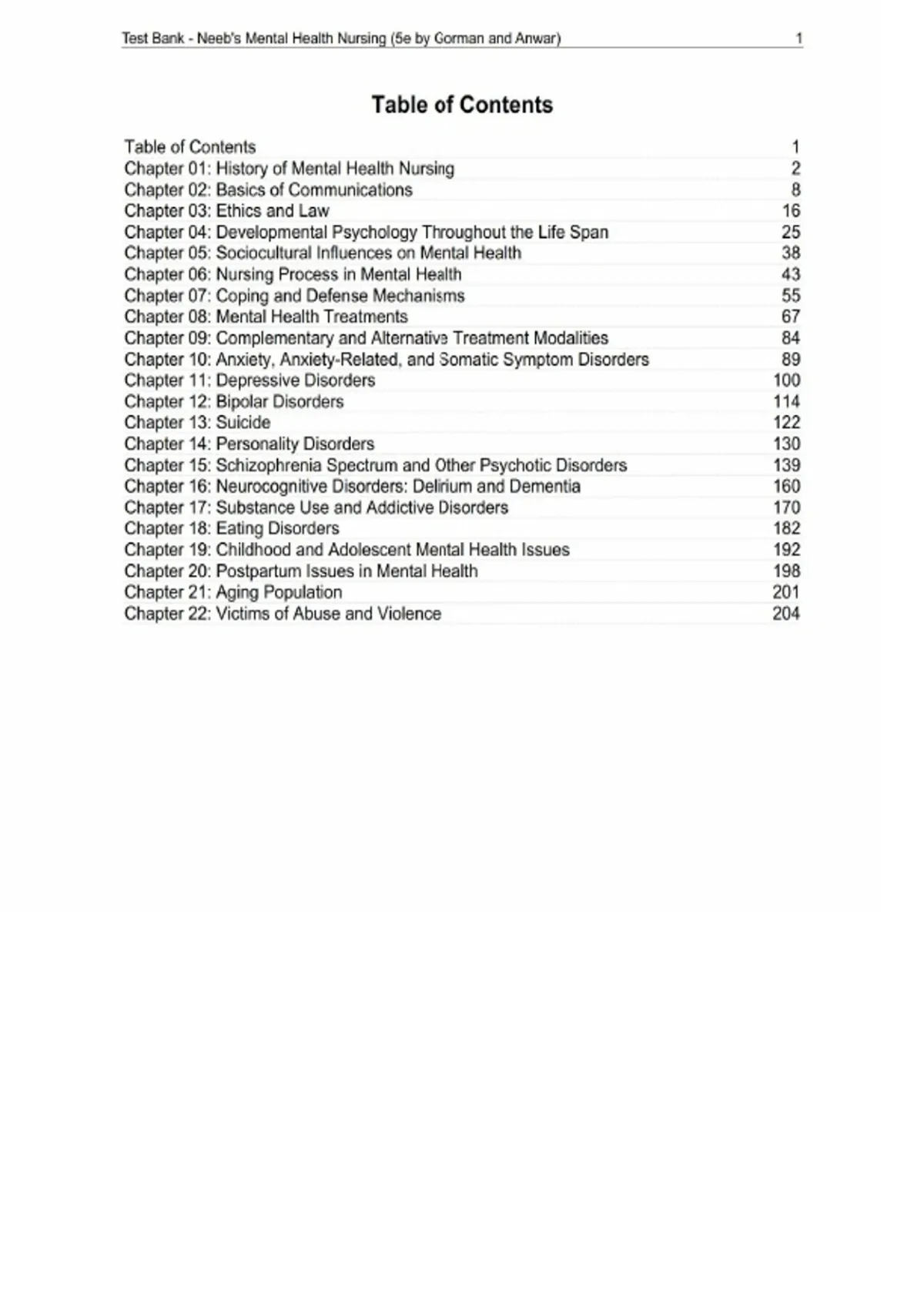 Test Bank for Neeb’s Mental Health Nursing, 5th Edition – Gorman, Chapters 1–22