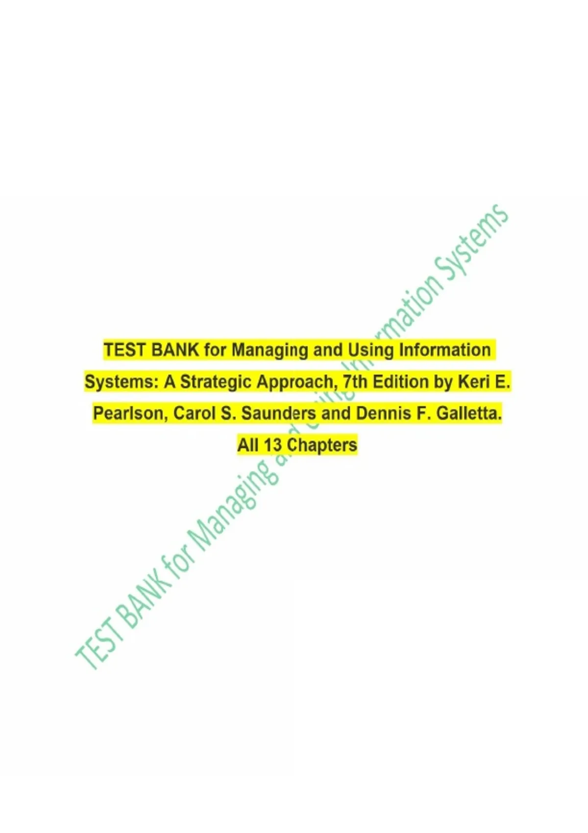 TEST BANK for Managing and Using Information Systems A Strategic Approach, 7th Edition by Keri E. Pearlson, Carol S. Saunders and Dennis F. Galletta. All 13 Chapters.