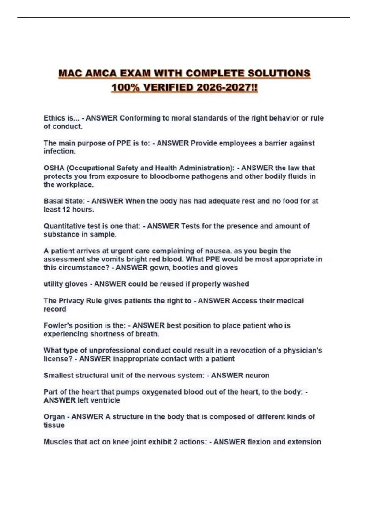 MAC AMCA EXAM WITH COMPLETE SOLUTIONS 100% VERIFIED !!