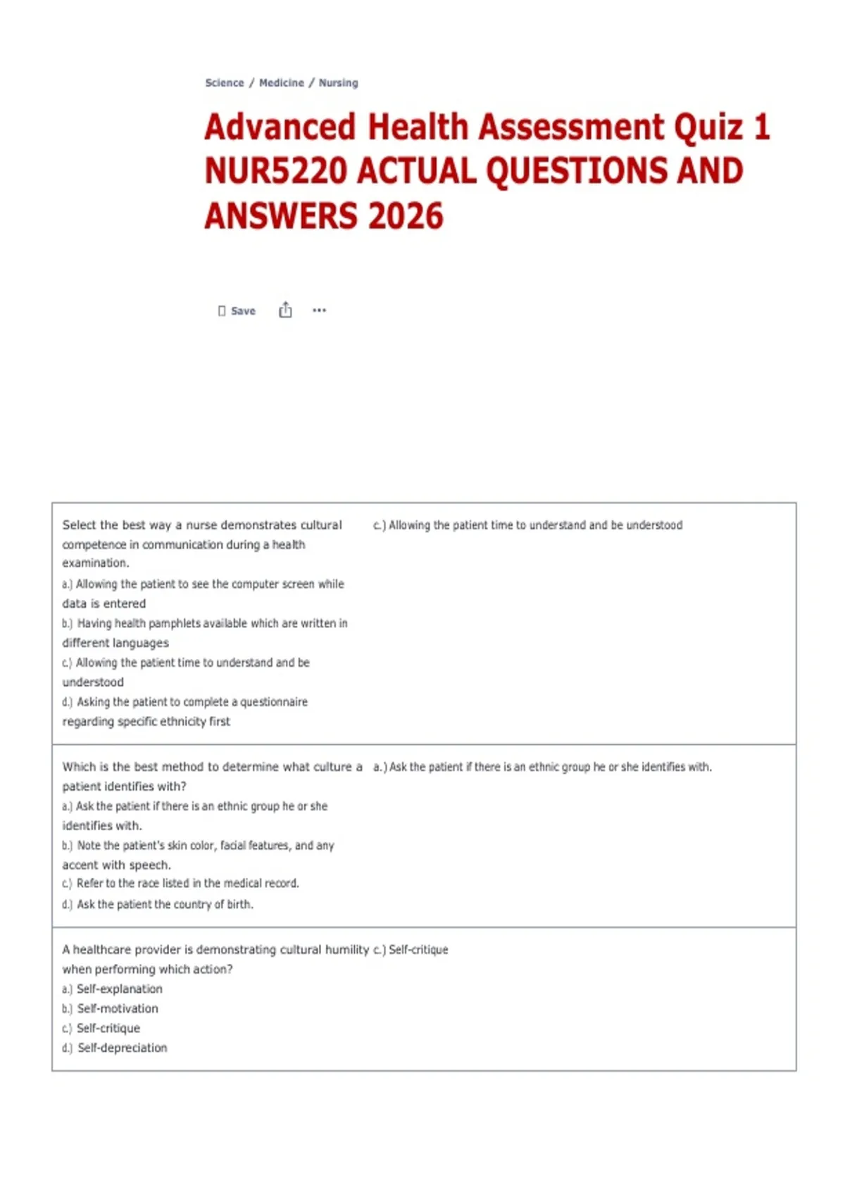 Advanced Health Assessment Quiz 1 NUR5220 ACTUAL QUESTIONS AND ANSWERS 2026