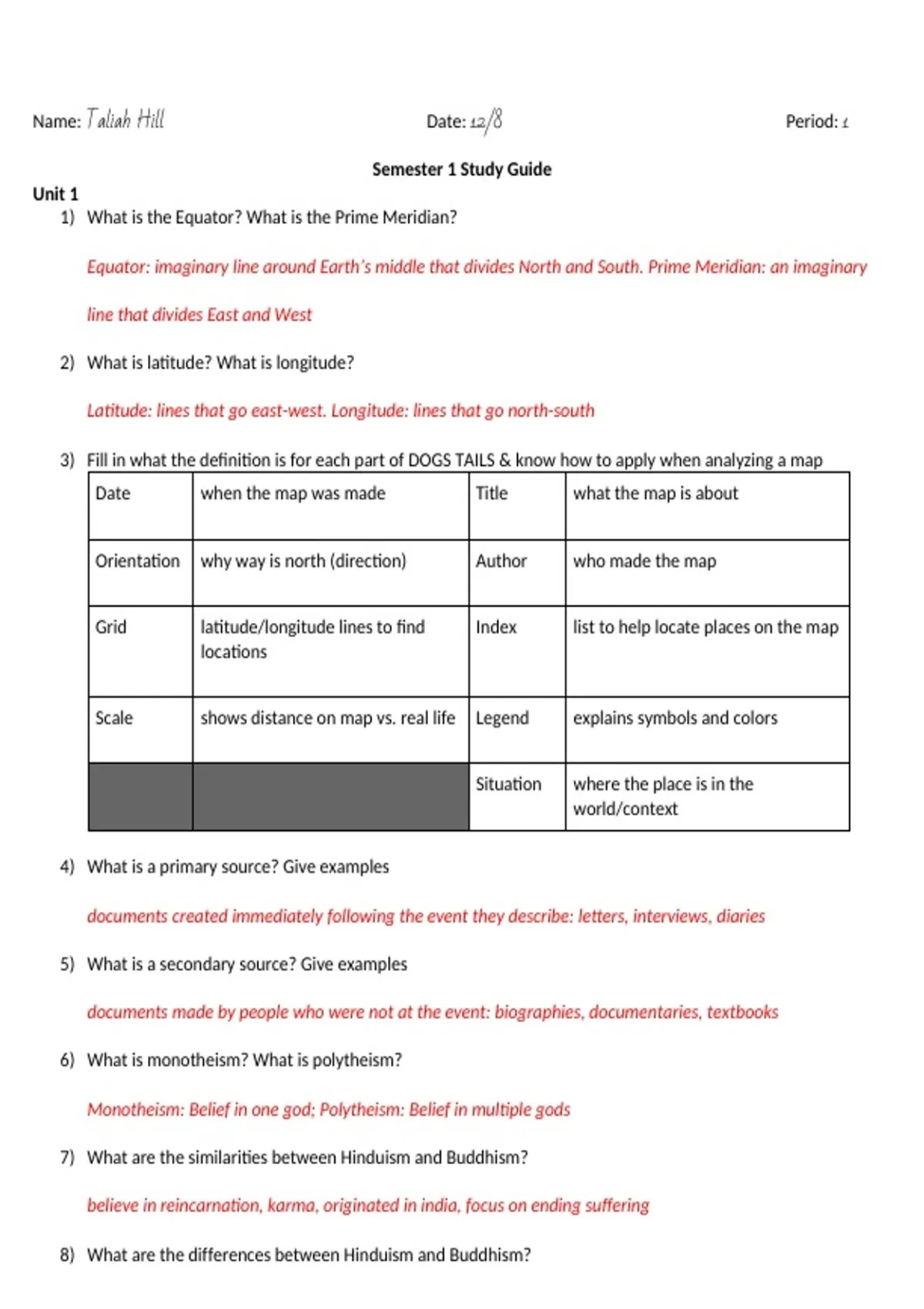 3) Fill in what the definition is for each part of DOGS TAILS & know how to apply when analyzing a map