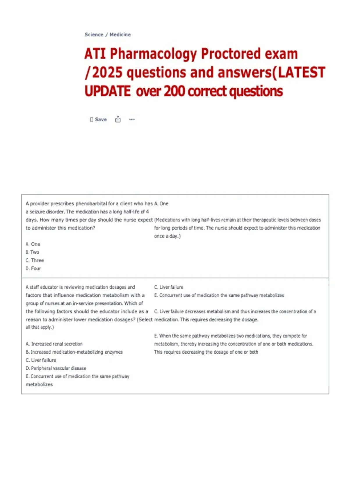 ATI Pharmacology Proctored exam /2025 questions and ATI Pharmacology Proctored exam /2025 questions and answers(LATEST UPDATE over 200 correct questions UPDATE over 200 correct questions