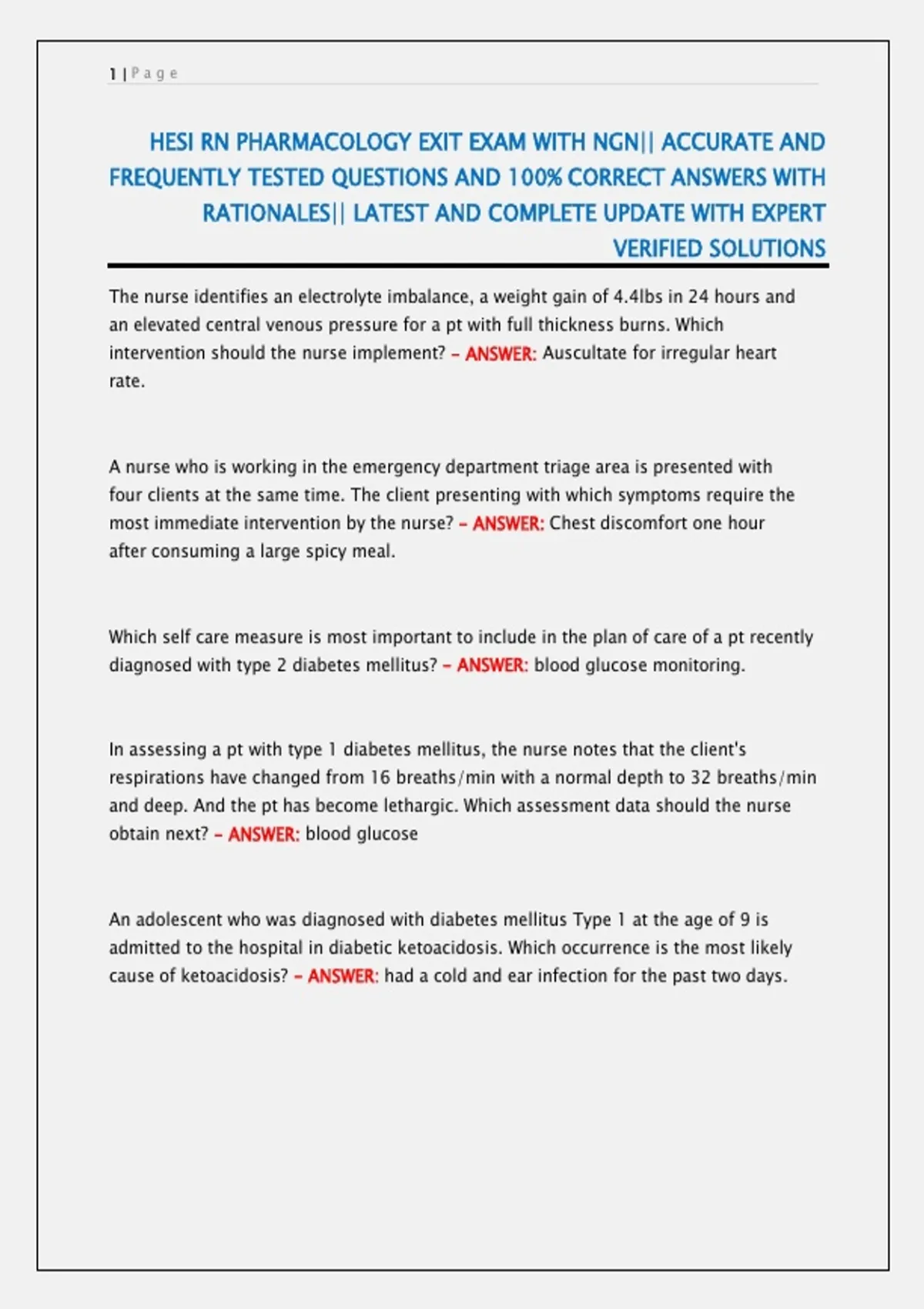 Prepare for the HESI RN Pharmacology Exit Exam with NGN-style questions featuring accurate, frequently tested content and 100% verified answers with detailed rationales. Fully updated and expert-reviewed, this resource aligns with current Elsevier HESI testing standards and supports pharmacology mastery, clinical judgment development, and confident RN exit exam performance.