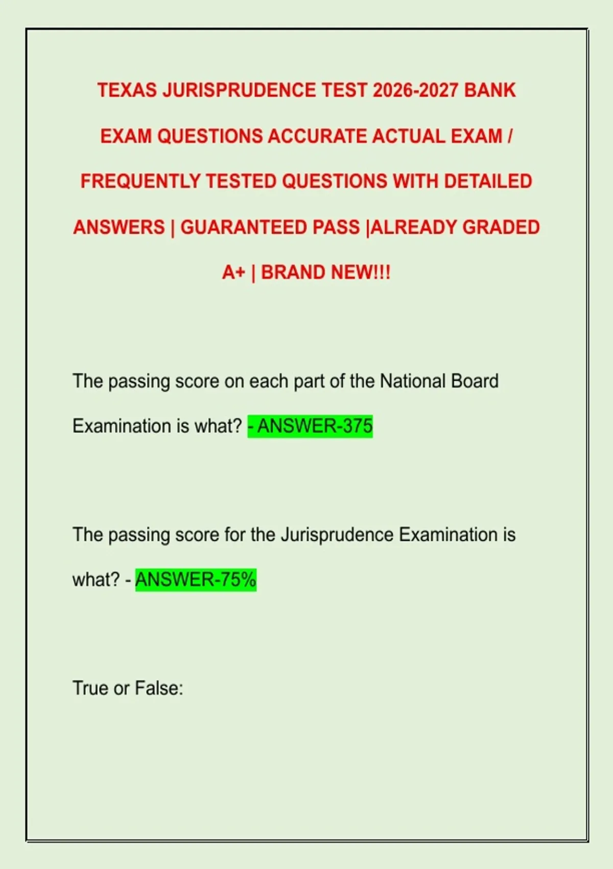 TEXAS JURISPRUDENCE TEST BANK EXAM QUESTIONS ACCURATE ACTUAL EXAM / FREQUENTLY TESTED QUESTIONS WITH DETAILED ANSWERS | GUARANTEED PASS |ALREADY GRADED A+ | BRAND NEW!!!