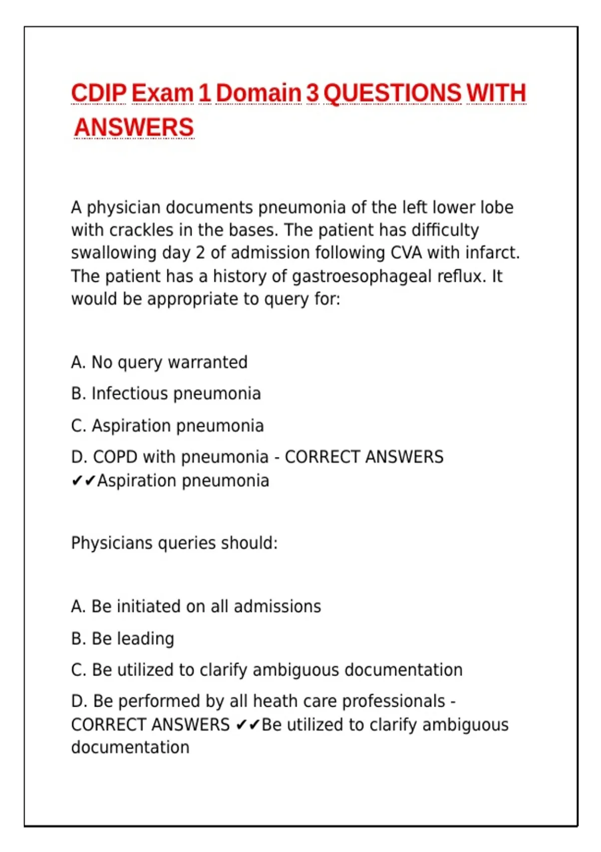 D. COPD with pneumonia - CORRECT ANSWERS