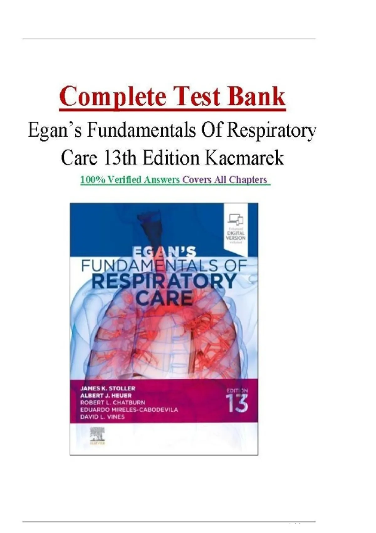 Maximize your success in respiratory therapy with this Workbook and Answer Key for Egan’s Fundamentals of Respiratory Care, 13th Edition by Kacmarek. It includes detailed exercises, NBRC-style practice questions, case studies, and complete answer solutions to help you master key concepts such as airway management, mechanical ventilation, gas exchange, patient assessment, and cardiopulmonary diagnostics. Designed to reinforce classroom learning and prepare for clinical exams, this workbook is a trusted companion for RT students and professionals alike. Egan’s workbook, respiratory care workbook, Kacmarek 13th edition, respiratory therapy, NBRC exam prep, RT study guide, mechanical ventilation, cardiopulmonary diagnostics, respiratory assessment, airway management, oxygen therapy, pulmonary rehab, case studies respiratory care, gas exchange physiology, clinical respiratory skills, patient monitoring, respiratory pharmacology, ventilator support, therapeutic procedures, respiratory workbook with answers #EgansWorkbook, #RespiratoryCare, #NBRCPrep, #RTstudents, #Kacmarek13thEdition, #RTWorkbook, #RespiratoryTherapy, #MechanicalVentilation, #AirwayManagement, #GasExchange, #ClinicalCaseStudies, #PulmonaryDiagnostics, #RTexamPrep, #CardiopulmonaryCare, #VentilatorSupport