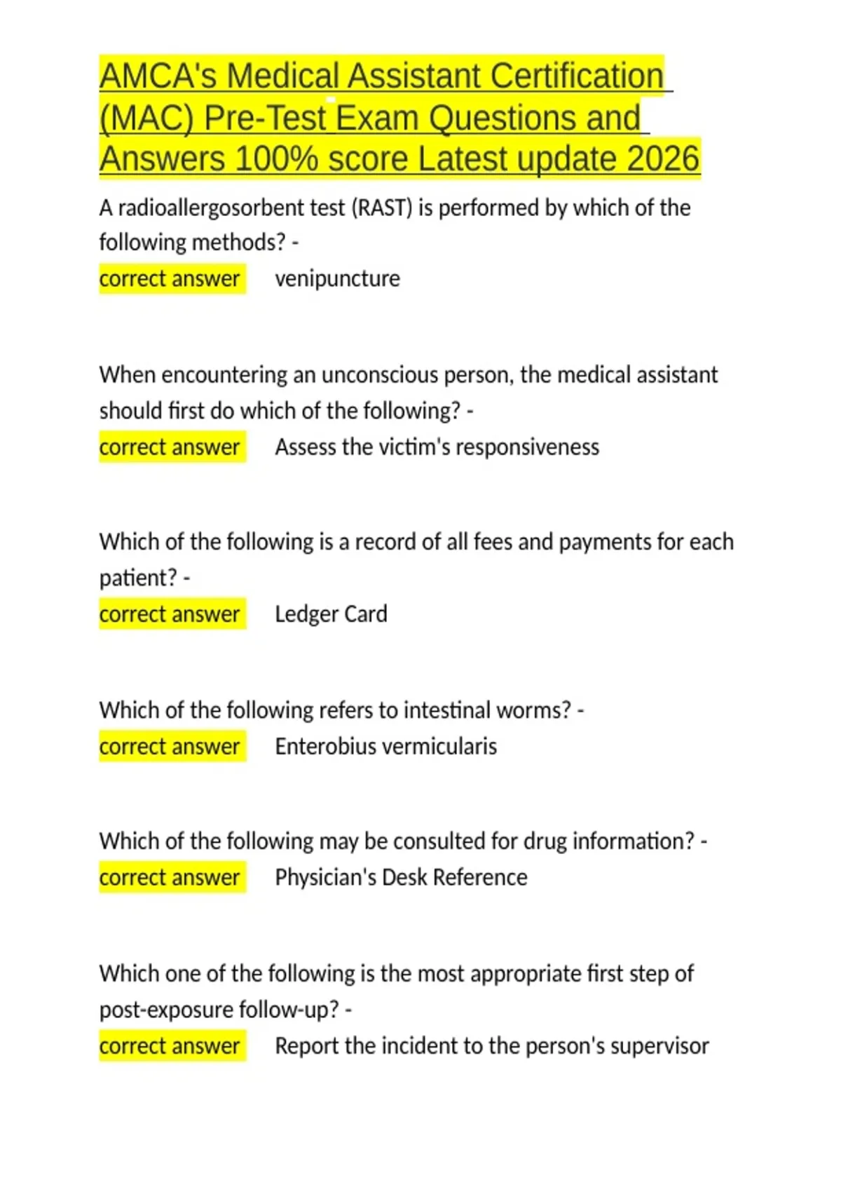 (MAC) Pre-Test Exam Questions and