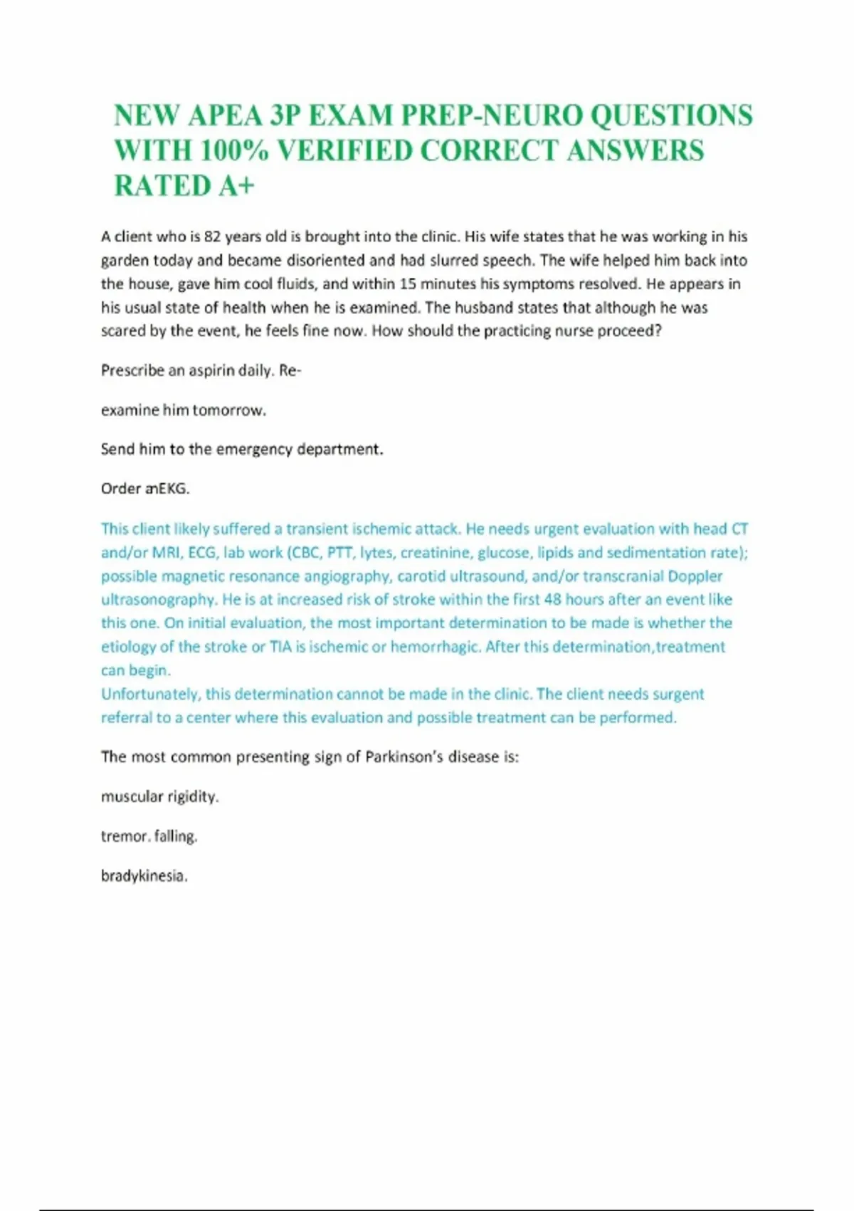 APEA 3P NEURO EXAM PRACTICE Predictor-Style Questions with Answers & Explanations 2025–2026 Updated Edition | Rated A+ Study Pack
