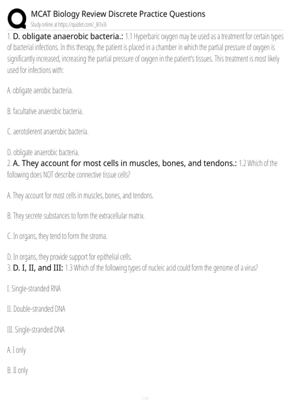 3. D. I, II, and III: 1.3 Which of the following types of nucleic acid could form the genome of a virus?