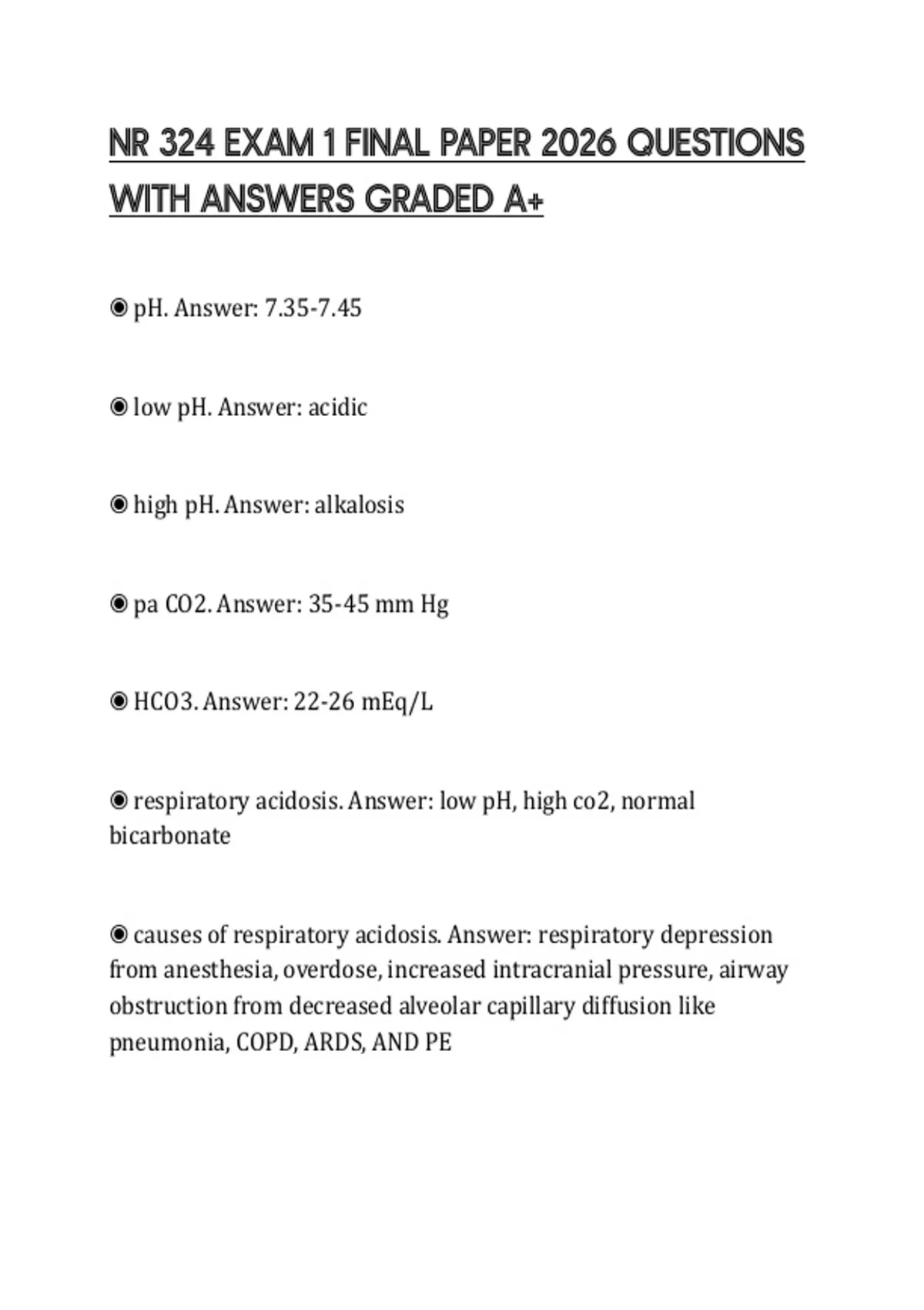 ◉ causes of respiratory acidosis. Answer: respiratory depression