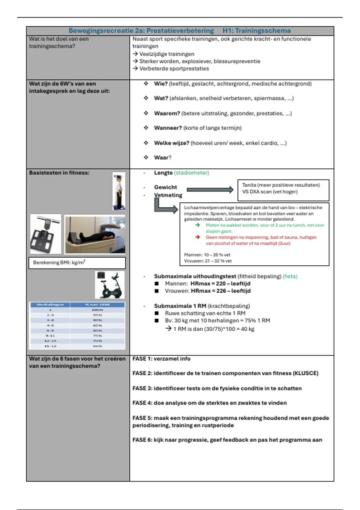 Bewegingsrecreatie 2a: Prestatieverbetering H1: Trainingsschema