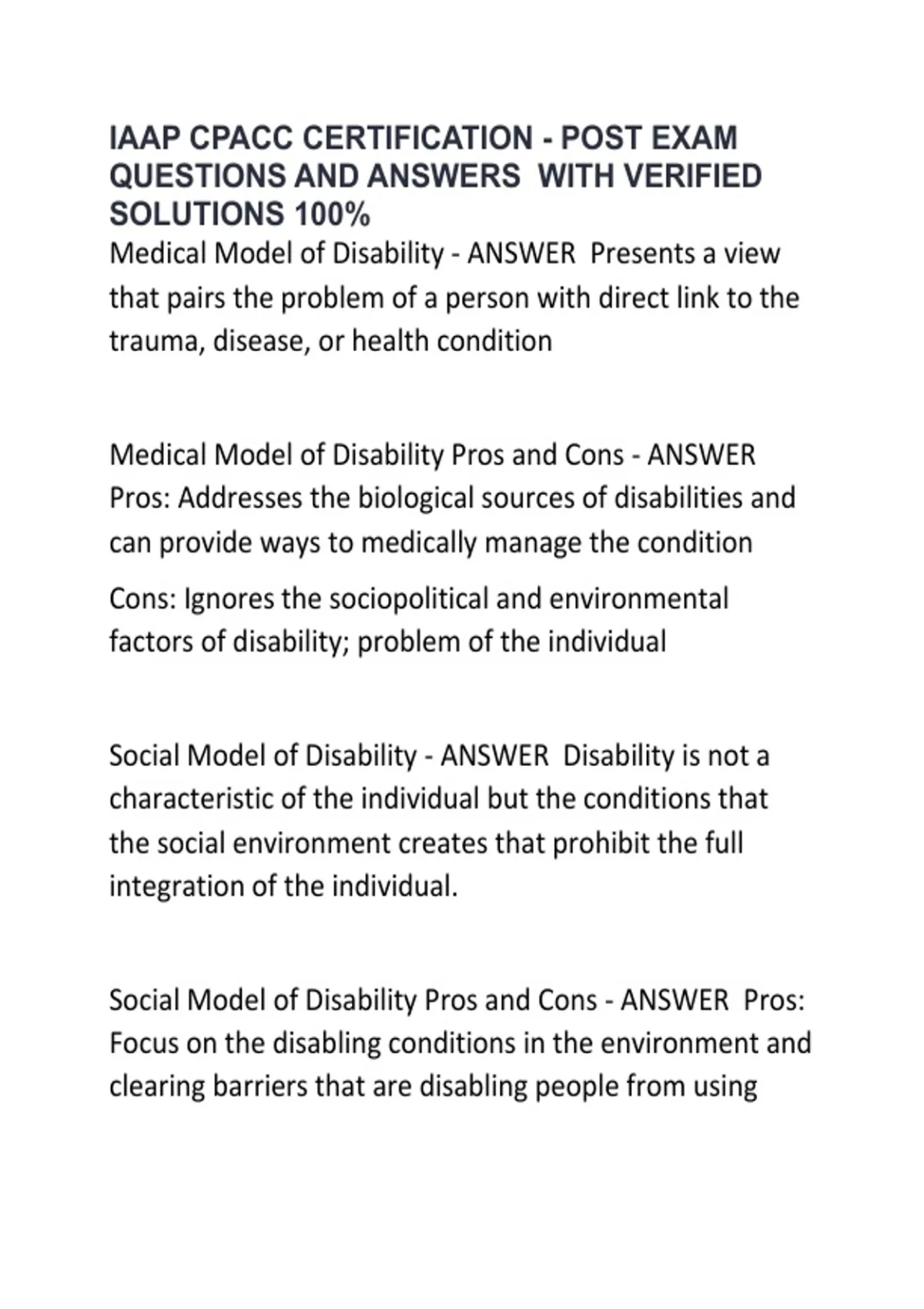 Medical Model of Disability Pros and Cons - ANSWER