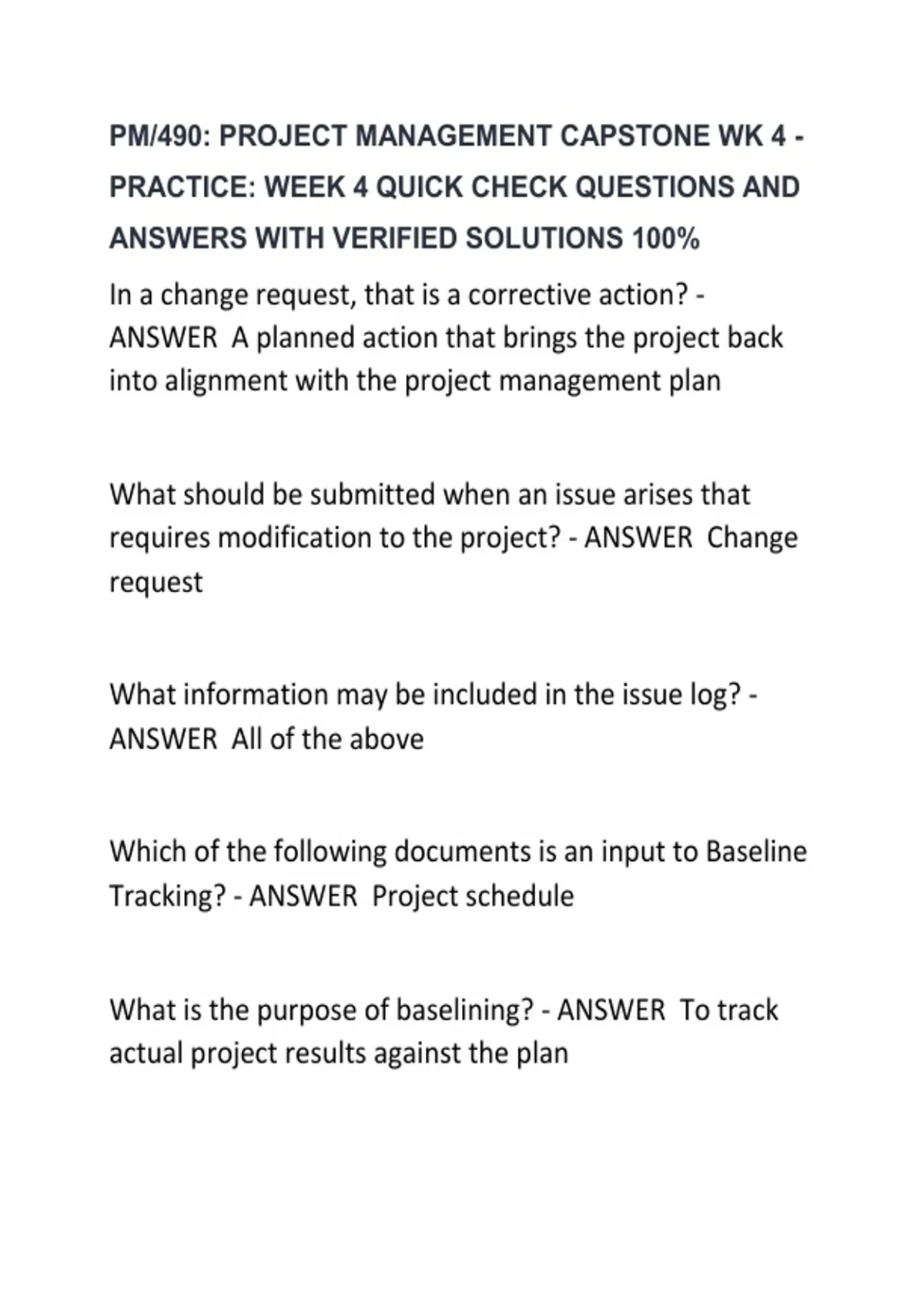 PM/490: PROJECT MANAGEMENT CAPSTONE WK 4 -